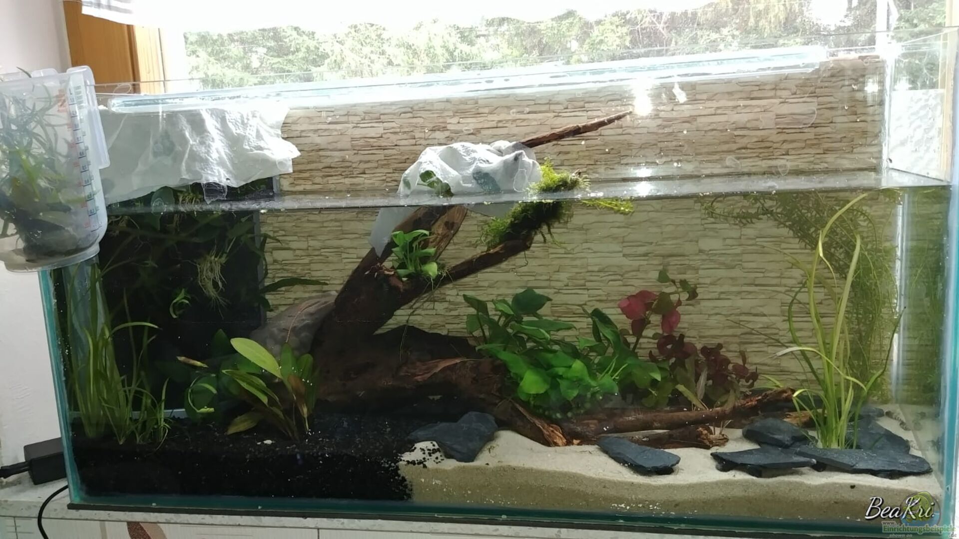 ??berwiegend Anubia, die ich auch auf dem Mattenfilter aufgenäht hab. Schmallblättrige Vallisneria, Cryptocoryne legroi, Ludwigia, Ophiopogon, verschiedene Moose, Wilowjavafarn, Hornraut, schwimmendes Wolfsmilchgewächs