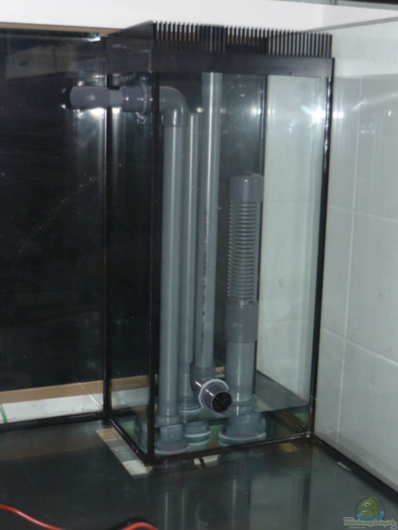 Automatischer Wasserwechsel. Gewitter- und Regensimulation 3 Bohrungen im Boden. (1x Vorlauf, 1x Rücklauf, 1x Notrücklauf) 2 Bohrungen in der ??berlaufkammer (1x Vorlauf, 1x Rücklauf=Bodenabsaugung)