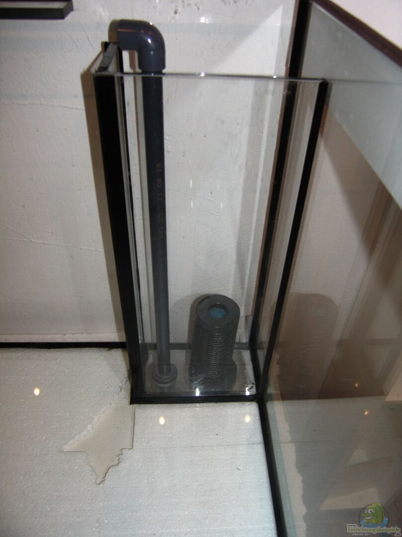 Der Bereich vor dem ??berlaufschacht wird so gestaltet, dass die Rückwand schräg davor verläuft. Hierdurch bildet sich ein Freiraum, wo die Technik untergebracht wird.
