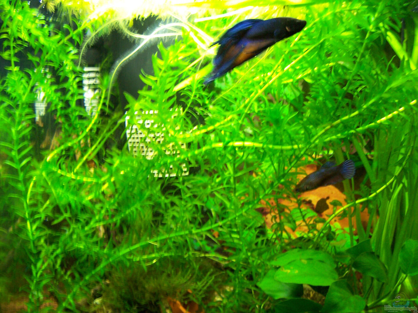 1x Kampffisch männlich (betta splendens) -> gekauft am 18 Februar - war vorher in einem anderen Becken - ansässig in diesem Becken seit dem 29.03.2011 (zur Zeit in einem anderen Becken) 1x Kampffisch weiblich (betta splendens) -> ansässig seit dem 23.03.2011 (zur Zeit in einem anderen Becken) 3x junge Kampffische (betta splendens) -> Ansässig seit ca. 01.07.2011 - Geschlecht noch unbekannt 10x Zwergbärblinge (Boraras maculatus) -> ansässig seit dem 12.03.2011 1x Antennenwels [...]