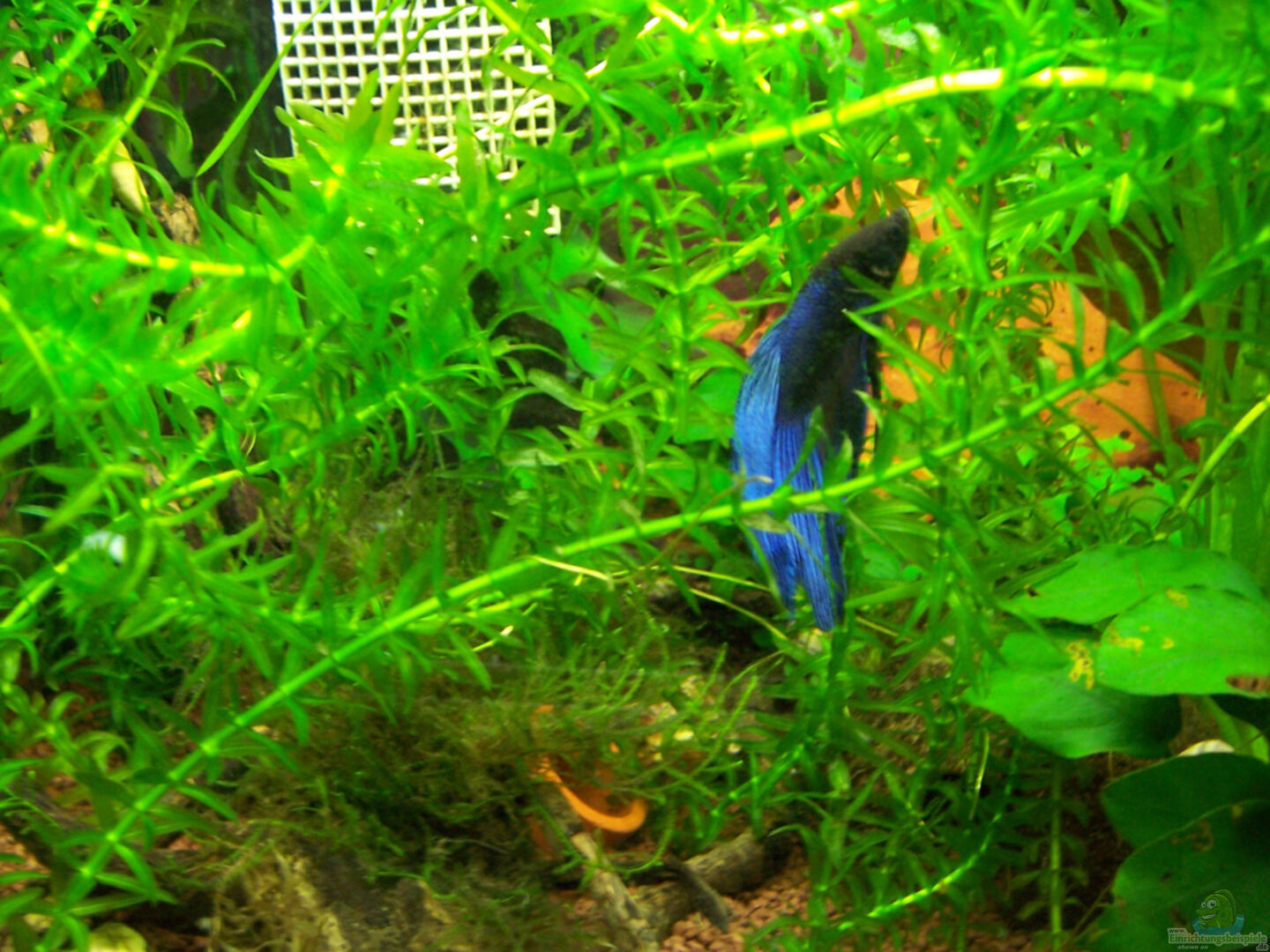 1x Kampffisch männlich (betta splendens) -> gekauft am 18 Februar - war vorher in einem anderen Becken - ansässig in diesem Becken seit dem 29.03.2011 (zur Zeit in einem anderen Becken) 1x Kampffisch weiblich (betta splendens) -> ansässig seit dem 23.03.2011 (zur Zeit in einem anderen Becken) 3x junge Kampffische (betta splendens) -> Ansässig seit ca. 01.07.2011 - Geschlecht noch unbekannt 10x Zwergbärblinge (Boraras maculatus) -> ansässig seit dem 12.03.2011 1x Antennenwels [...]