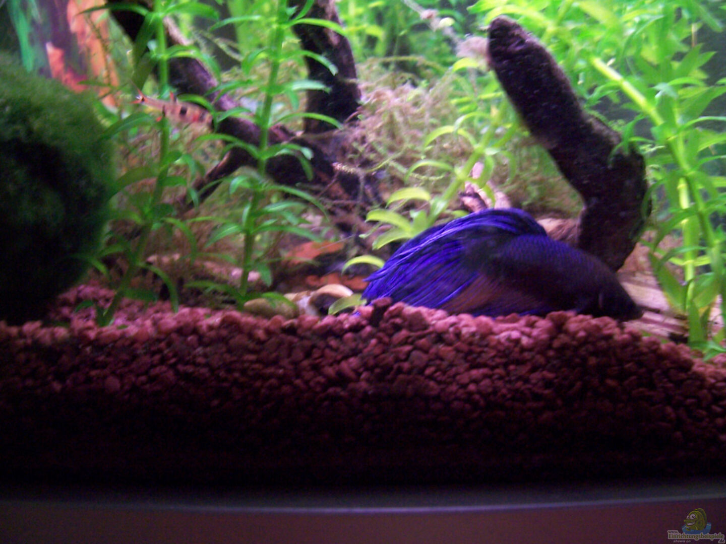 1x Kampffisch männlich (betta splendens) -> gekauft am 18 Februar - war vorher in einem anderen Becken - ansässig in diesem Becken seit dem 29.03.2011 (zur Zeit in einem anderen Becken) 1x Kampffisch weiblich (betta splendens) -> ansässig seit dem 23.03.2011 (zur Zeit in einem anderen Becken) 3x junge Kampffische (betta splendens) -> Ansässig seit ca. 01.07.2011 - Geschlecht noch unbekannt 10x Zwergbärblinge (Boraras maculatus) -> ansässig seit dem 12.03.2011 1x Antennenwels [...]