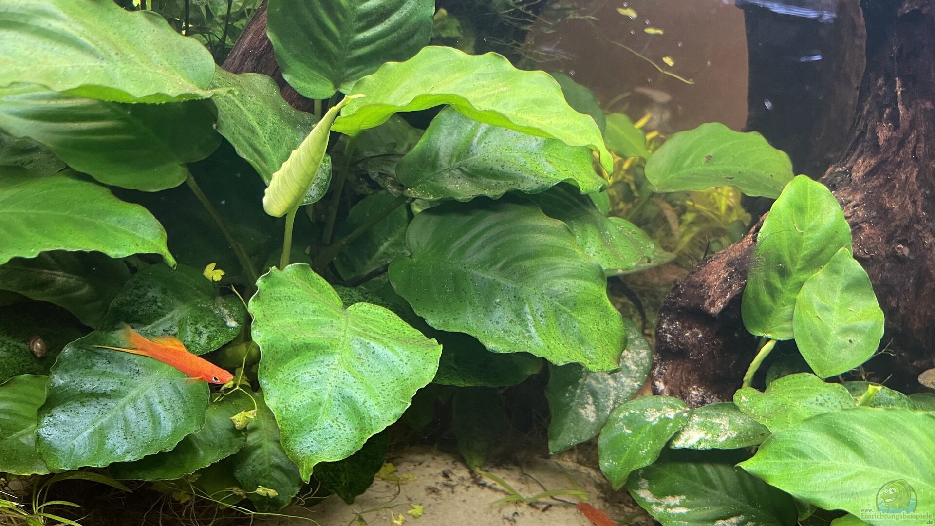 5 Orangeflossen-Panzerwelse (Corydoras sterbai) 8 Schwertträger (Xiphophorus hellerii) (2w/6m und viel kleiner Nachwuchs) 2 Schmetterlingsbuntbarsche (Mikrogeophagus ramirezi) Die Buntbarsche sorgen unter anderem dafür, dass der Schwertträgernachwuchs nicht überhand nimmt. 2 Ohrgitter Harnischwelse (Otocinclus) (Die Tiere sind schon sehr alt und verbringen hier ihren Lebensabend.) 6 Amanogarnelen (Caridina multidentata)