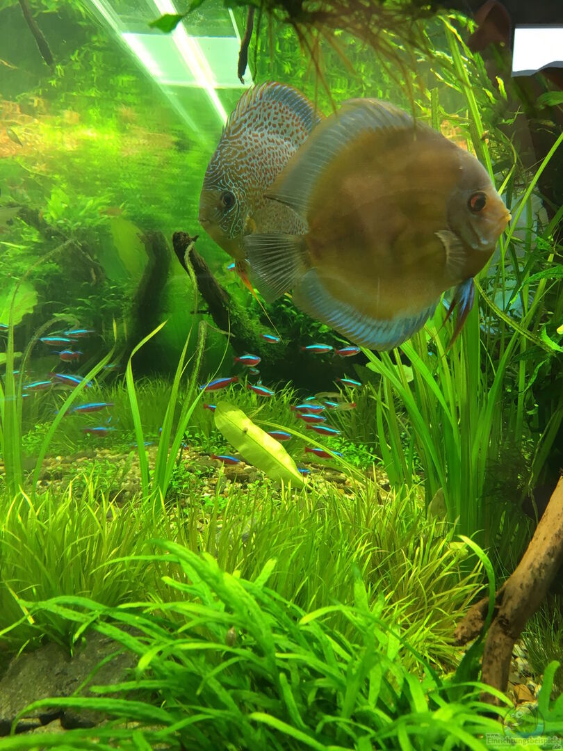 - 8 Symphysodon aequifasciatus - Diskusbuntbarsch davon: - 4 Kobaltblau - 2 Snake Skin Türkisrot - 2 Flächentürkis - 30 Paracheirodon axelrodi - Roter Neon - 30 Hasemania nana - Kupfersalmler - 7 Pangio kuhlii - Dornaugen - 3 Ancistrus spec. - Brauner Antennenwels - 100+ Neocaridina heteropoda var. Red - Red Fire Garnele