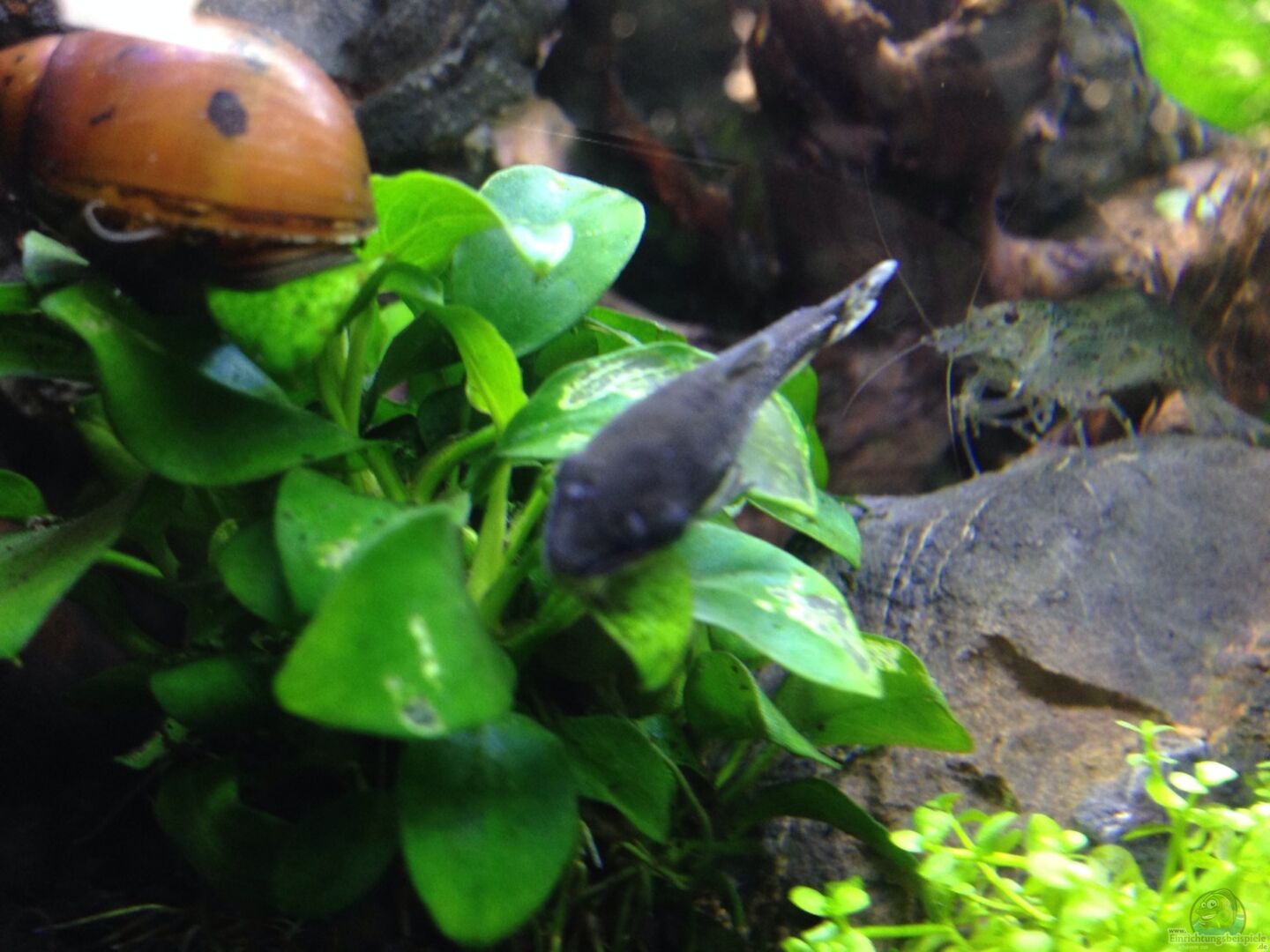 12x Keilflegbärbling (Trigonostigma heteromorpha) 5x (2M/3W)schwarzer Phantomsalmler (Hyphessobrycon megalopterus) 4x Ohrgitterharnischwels (Otoconclus hoppei) 5x Amano-Garnele (Caridina multidentata) 1x Zebrarennschnecke (Vittina coromandeliana) 1x Geweihschnecke (Clithon sp.) 3x Ornament-Rennschnecke (Vittina semiconica)