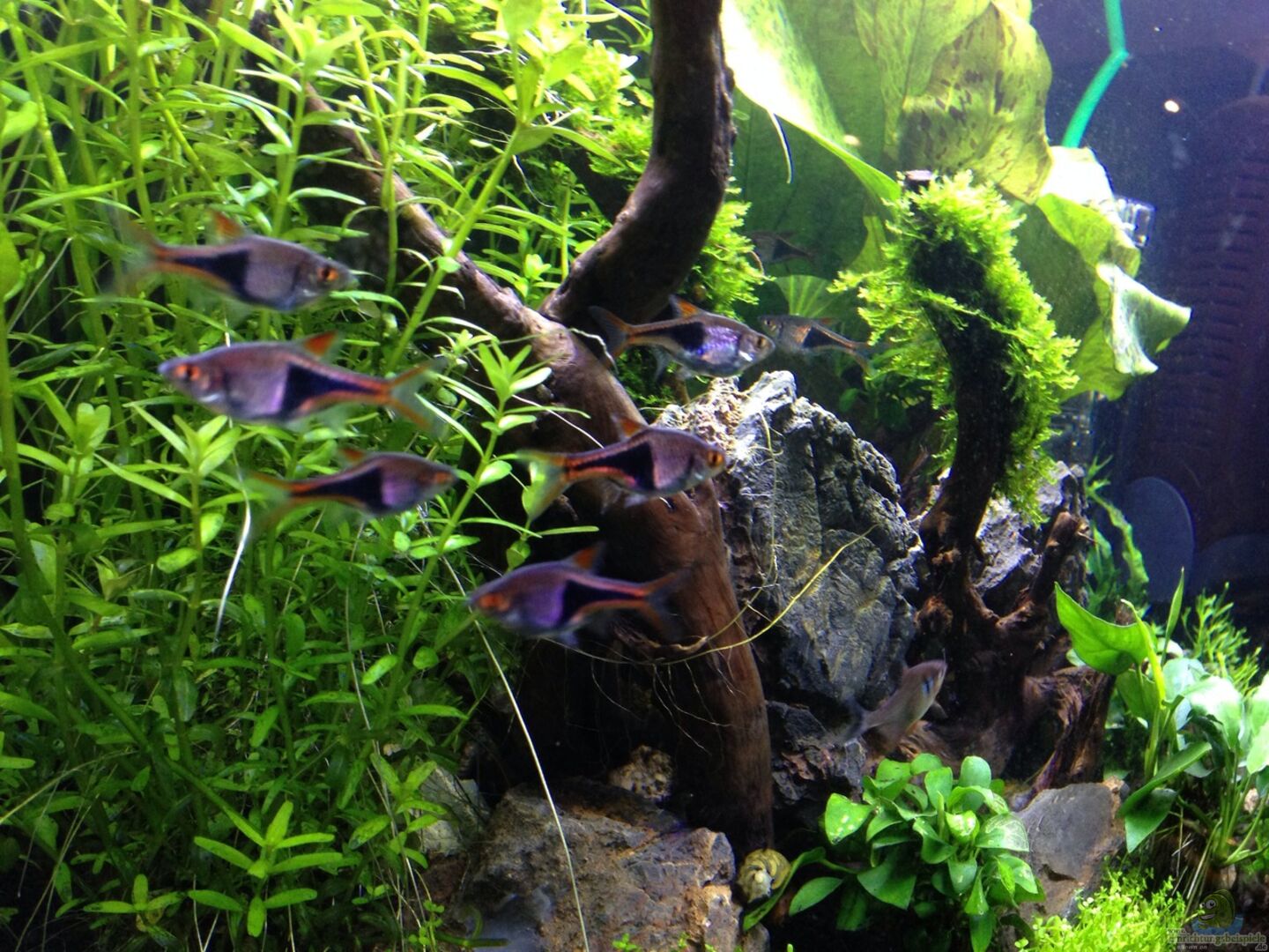 12x Keilflegbärbling (Trigonostigma heteromorpha) 5x (2M/3W)schwarzer Phantomsalmler (Hyphessobrycon megalopterus) 4x Ohrgitterharnischwels (Otoconclus hoppei) 5x Amano-Garnele (Caridina multidentata) 1x Zebrarennschnecke (Vittina coromandeliana) 1x Geweihschnecke (Clithon sp.) 3x Ornament-Rennschnecke (Vittina semiconica)
