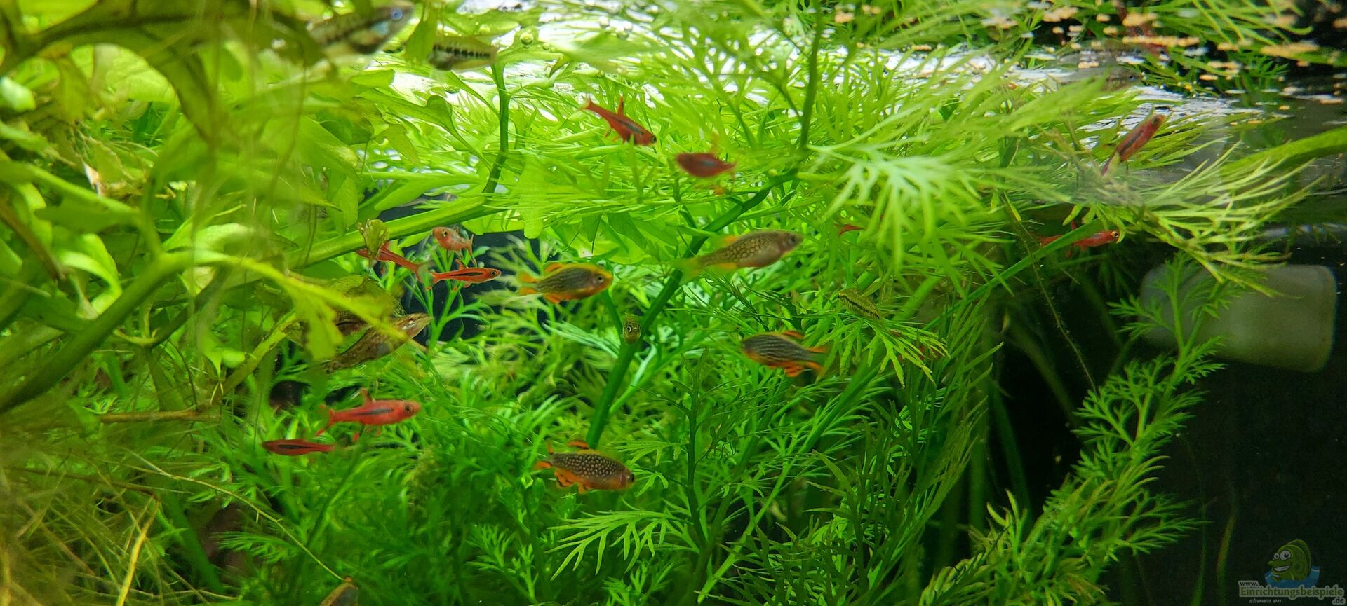 8 Garra flavatra ca. 16-20 Dornaugen (myersi, cuneovirgata, oblonga, kuhlis, 2 weiße Dornaugen und 2 (Panda?)Dornaugen unbekannter Art 6 Streifenschmerlen, Botia striata 6 Rosy Zwergschmerlen 18 Keilfleckbärblinge, Trigonostigma espei 19 Danio choprae 5 indische Zwergstachelaale, Macrognathus pancalus 1 (mit Pflanzen eingeschleppte) Boesman Regenbogenfisch - er sucht ein neues Zuhause :) ~ 100 Sulawesi Algengarnelen Rennschnecken
