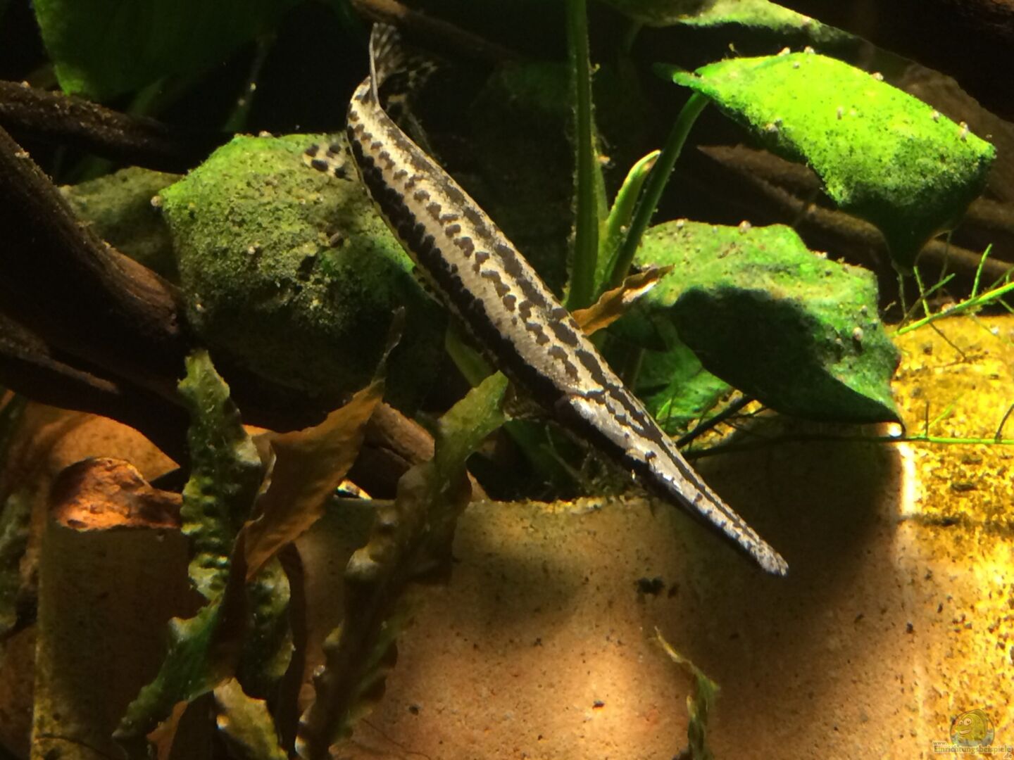 3x Gefleckter Knochenhecht Lepisosteus oculatus Grö??e ca. 13-15 cm Geschlechter wohl 1/2 (w/m). Ist in dem Alter noch schwer zu bestimmen. Aber einer wirkt etwas kräftiger und breiter. 1x Neolamprologus pulcher (sucht noch ein neues Zuhause) Ca. 20-50 Endeler Guppy Mix (je nach Appetit der Knochenhechte). Werden regelmä??ig aus eigener explodierender Zucht nachgefüllt oder vermehren sich selber im Becken. Wer einmal Guppies hatte wei?? wovon ich reden, der Millionenfisch. 1x [...]