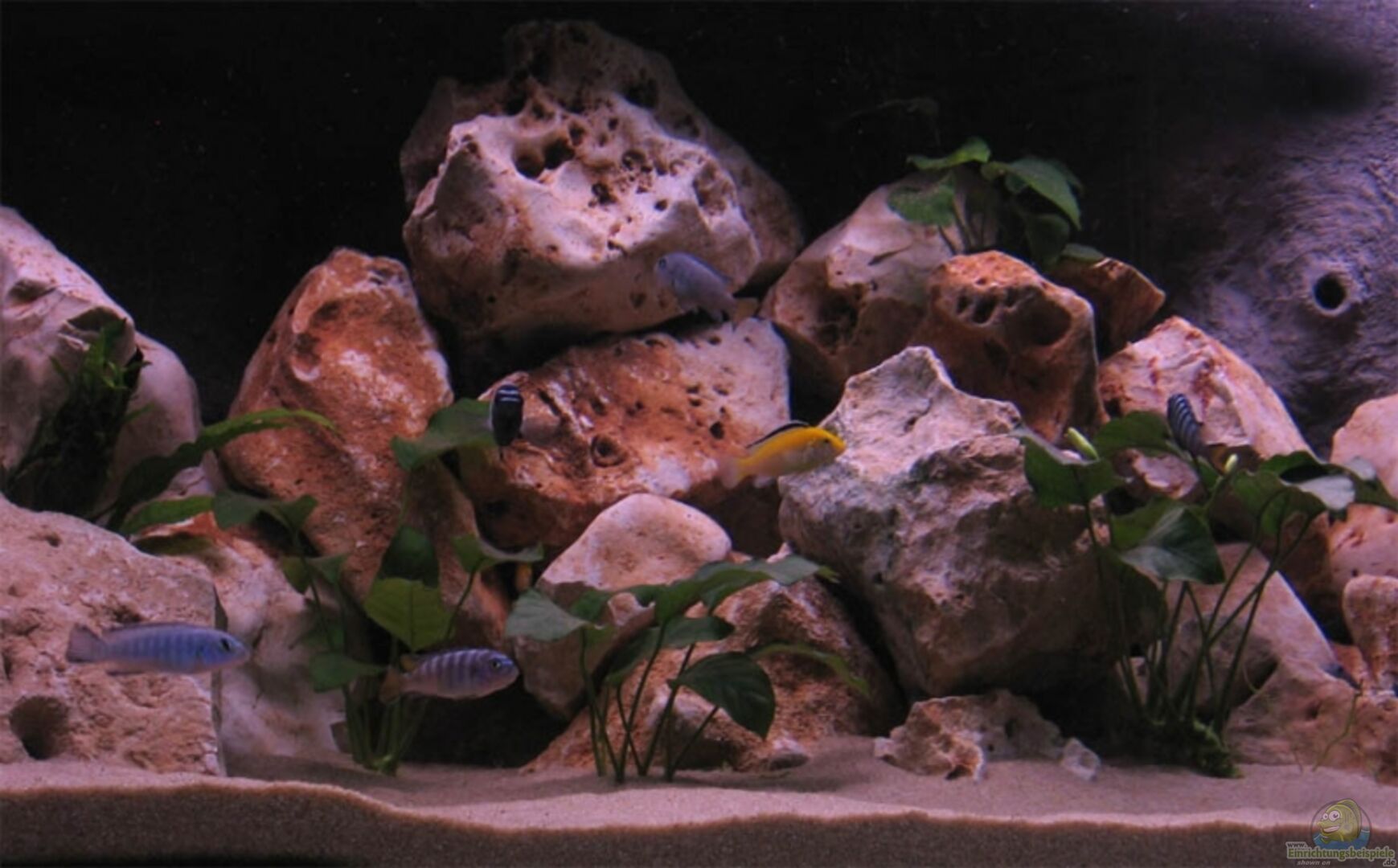 Labidochromis caeruleus yellow (1M/4W) Pseudotropheus elongantus ´Mpanga´ (1M/4W) Pseudotropheus solocofi (1M/4W) Da die Tiere noch sehr jung sind konnte mir der Züchter bei den Mpangas nicht 100%ig garantieren das es wirklich 1/4 sind. Er meinte es könnten auch 2/3 sein. Im Becken sieht es vom Verhalten fast so aus als wären es 2 Böcke. Aber wie mir scheint hat jeder seine Höhle und sie streiten sich nicht übermä??ig. Ich werde das Ganze im Auge behalten und gegebenfalls eingreifen. [...]