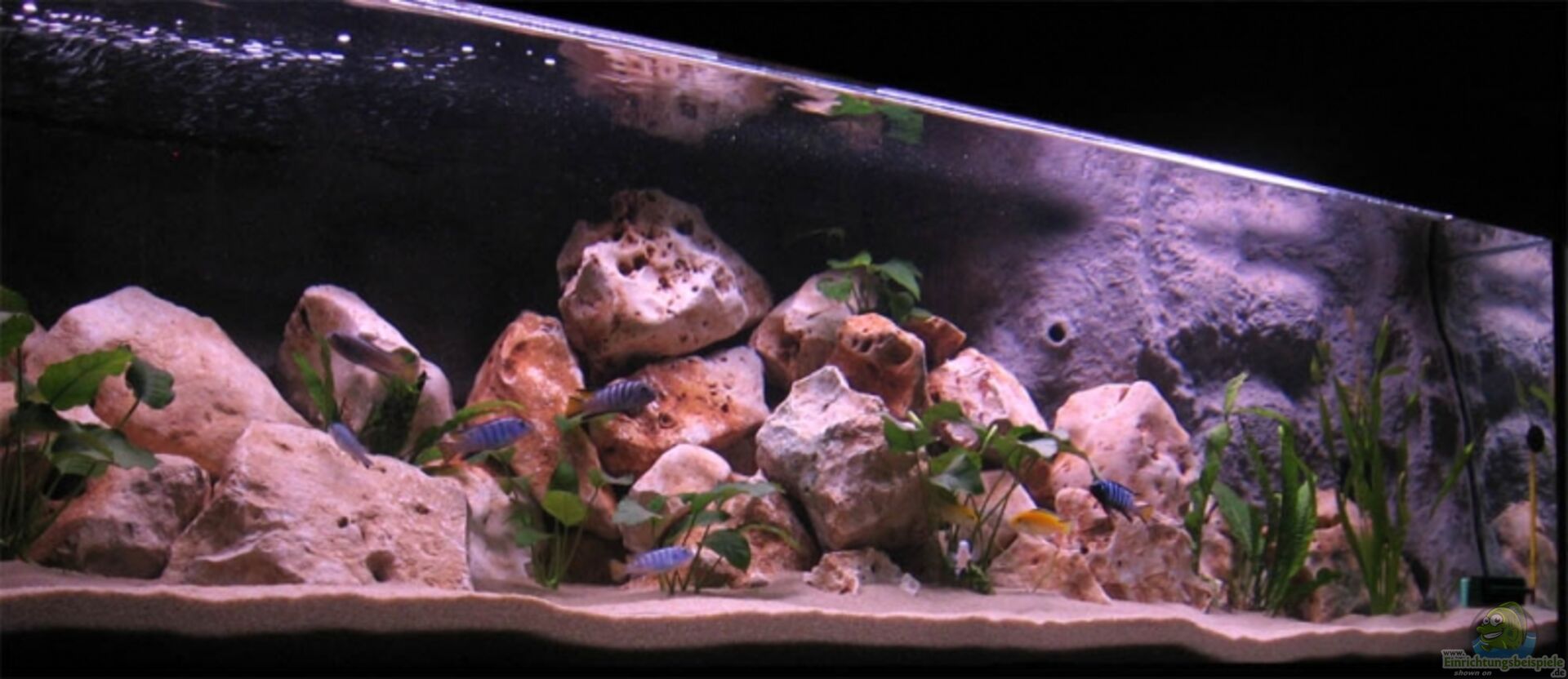 Labidochromis caeruleus yellow (1M/4W) Pseudotropheus elongantus ´Mpanga´ (1M/4W) Pseudotropheus solocofi (1M/4W) Da die Tiere noch sehr jung sind konnte mir der Züchter bei den Mpangas nicht 100%ig garantieren das es wirklich 1/4 sind. Er meinte es könnten auch 2/3 sein. Im Becken sieht es vom Verhalten fast so aus als wären es 2 Böcke. Aber wie mir scheint hat jeder seine Höhle und sie streiten sich nicht übermä??ig. Ich werde das Ganze im Auge behalten und gegebenfalls eingreifen. [...]