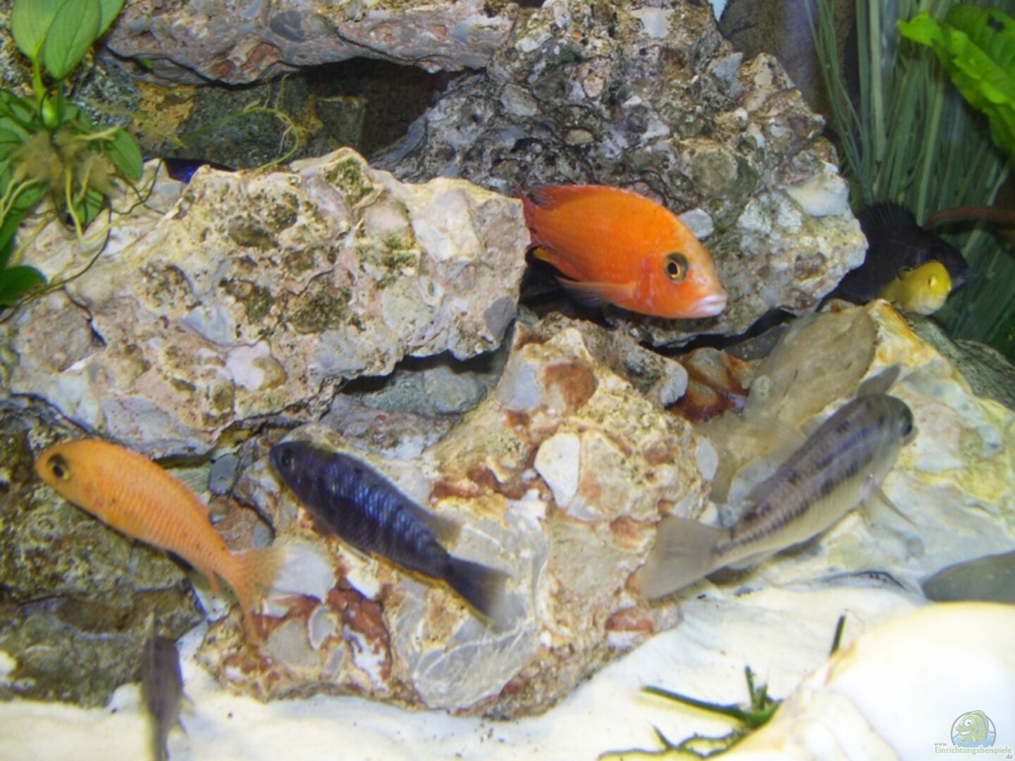 Zur Zeit besteht der Besatz überwiegend aus Jungfischen! Aulonocara ´Firefish´ 1M 2W Copadicromis Mbenji 1M 3W Placidochromis Phenochilus Mdoka 1M 2W Sciaenochromis fryeri ´Snow White´ 1M 2W Labidochromis caeruleus Yellow 2M 6W Synodontis njassae 6x