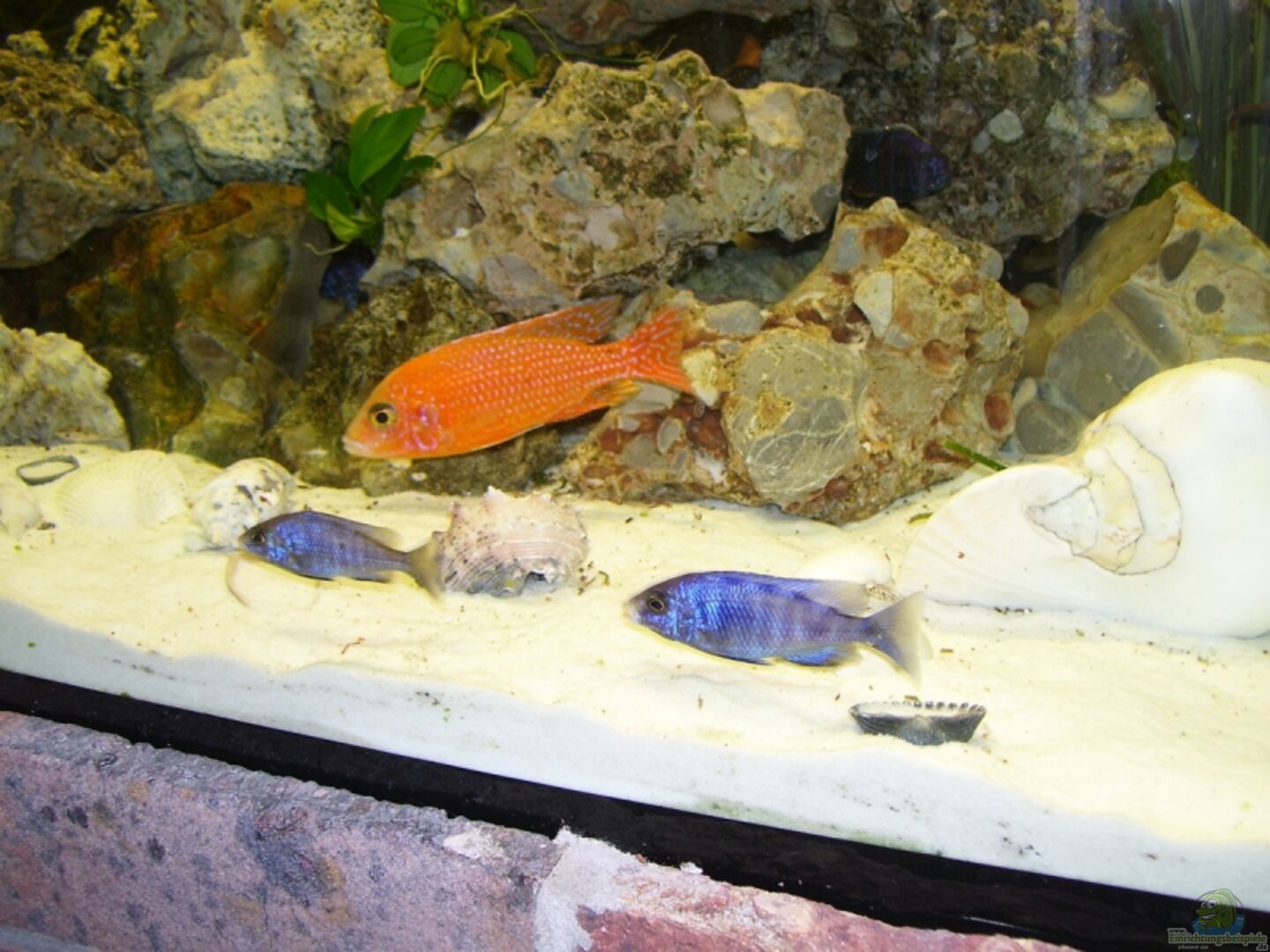 Zur Zeit besteht der Besatz überwiegend aus Jungfischen! Aulonocara ´Firefish´ 1M 2W Copadicromis Mbenji 1M 3W Placidochromis Phenochilus Mdoka 1M 2W Sciaenochromis fryeri ´Snow White´ 1M 2W Labidochromis caeruleus Yellow 2M 6W Synodontis njassae 6x