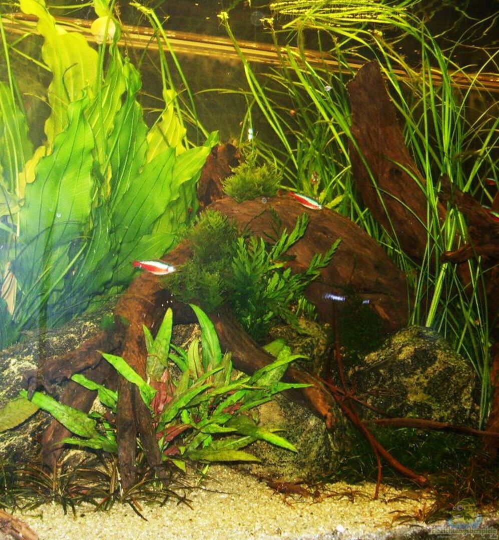 80 x Paracheirodon axelrodi 15 x Hemigrammus bleheri 10 x Corydoras sterbai + 2 Junge habe ich entdeckt 8 x Otocinclus 1 x L 18 60 x Amano Garnelen 2x Apfelschnecken