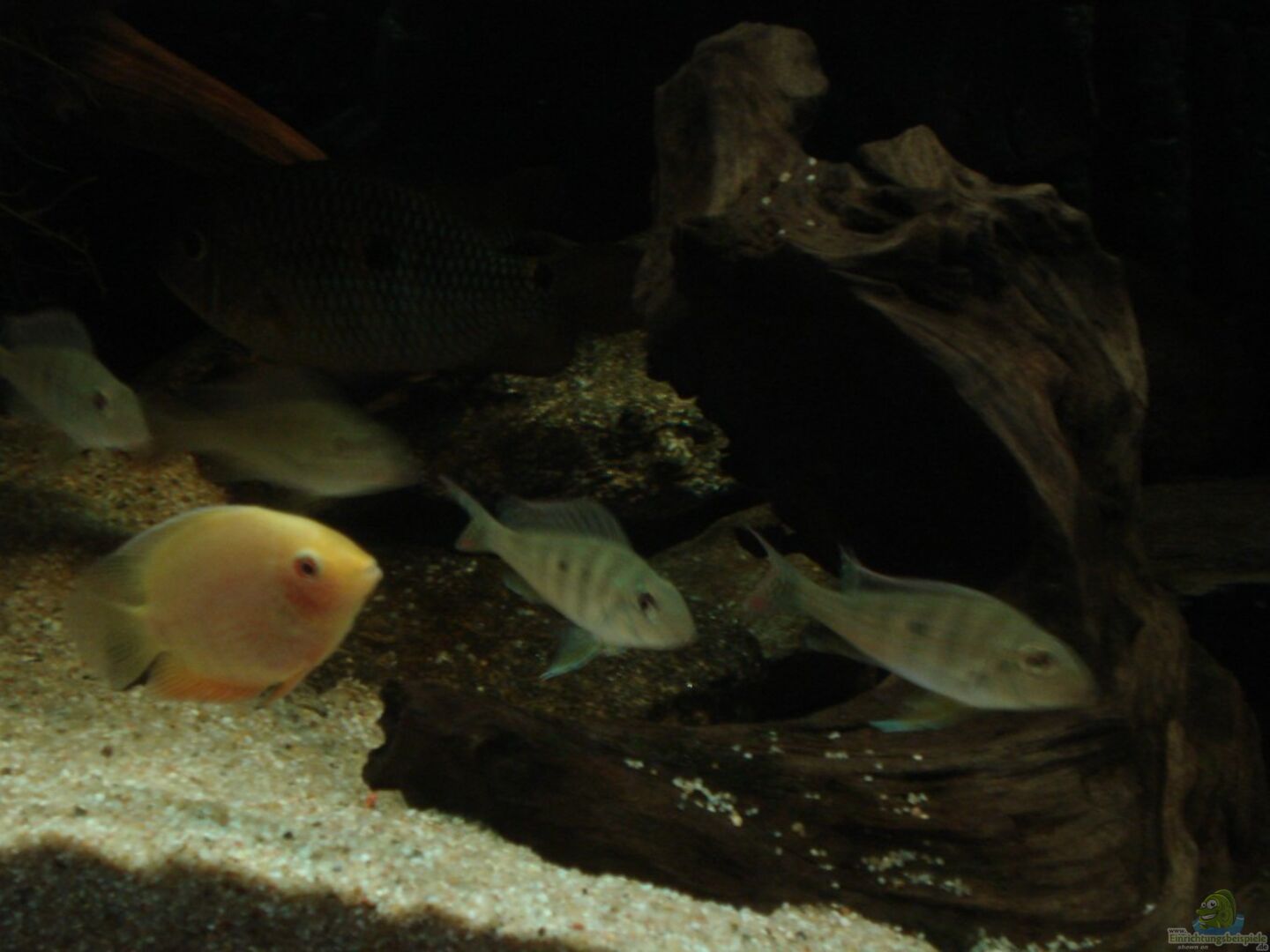 => 6 WF Geophagus Altifrons ´Tapajos´ => 4 Heros sp.´Gold´ => 5 Heros efasciatus => 2 Aequidens metae => 1 L190 => 1 L191 => 1 Platydoras costatus ( hat sei Versteck gewechselt und kann demnächst in ein anderes Becken umgesetzt werden)