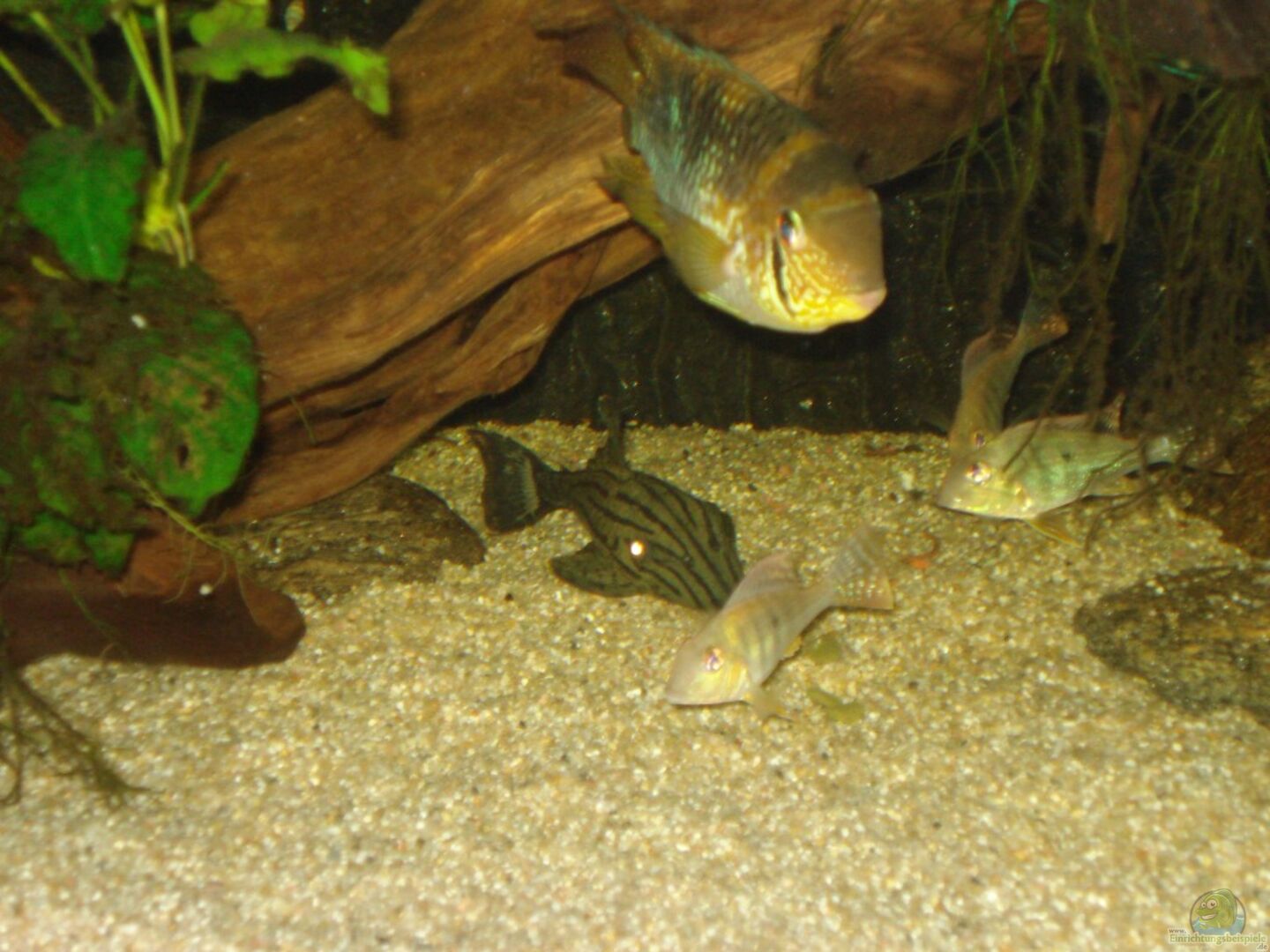 => 6 WF Geophagus Altifrons ´Tapajos´ => 4 Heros sp.´Gold´ => 5 Heros efasciatus => 2 Aequidens metae => 1 L190 => 1 L191 => 1 Platydoras costatus ( hat sei Versteck gewechselt und kann demnächst in ein anderes Becken umgesetzt werden)
