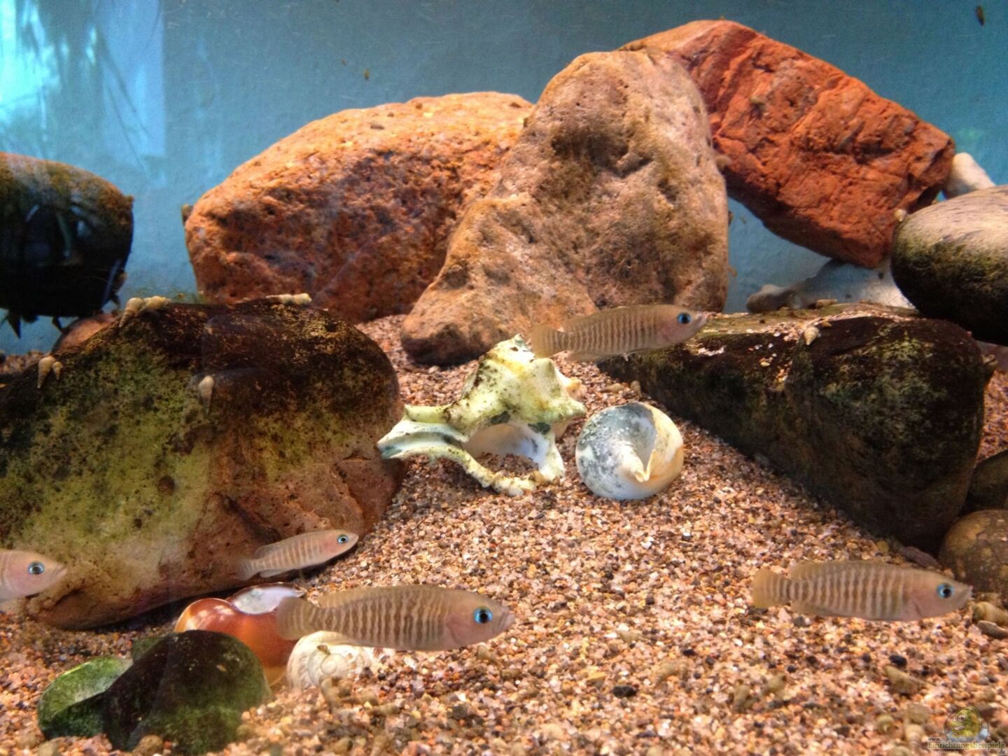 5 Cyprichromis leptosoma: 3w, 2 Jungfische (hoffentlich ist ein m dabei) 2 Neolamprologus cylindricus Neolamprologus multifasciatus: 3w, 4m (Besatz wird bei fortbestehendem Ungleichgewicht noch mit Weibchen aufgestockt)