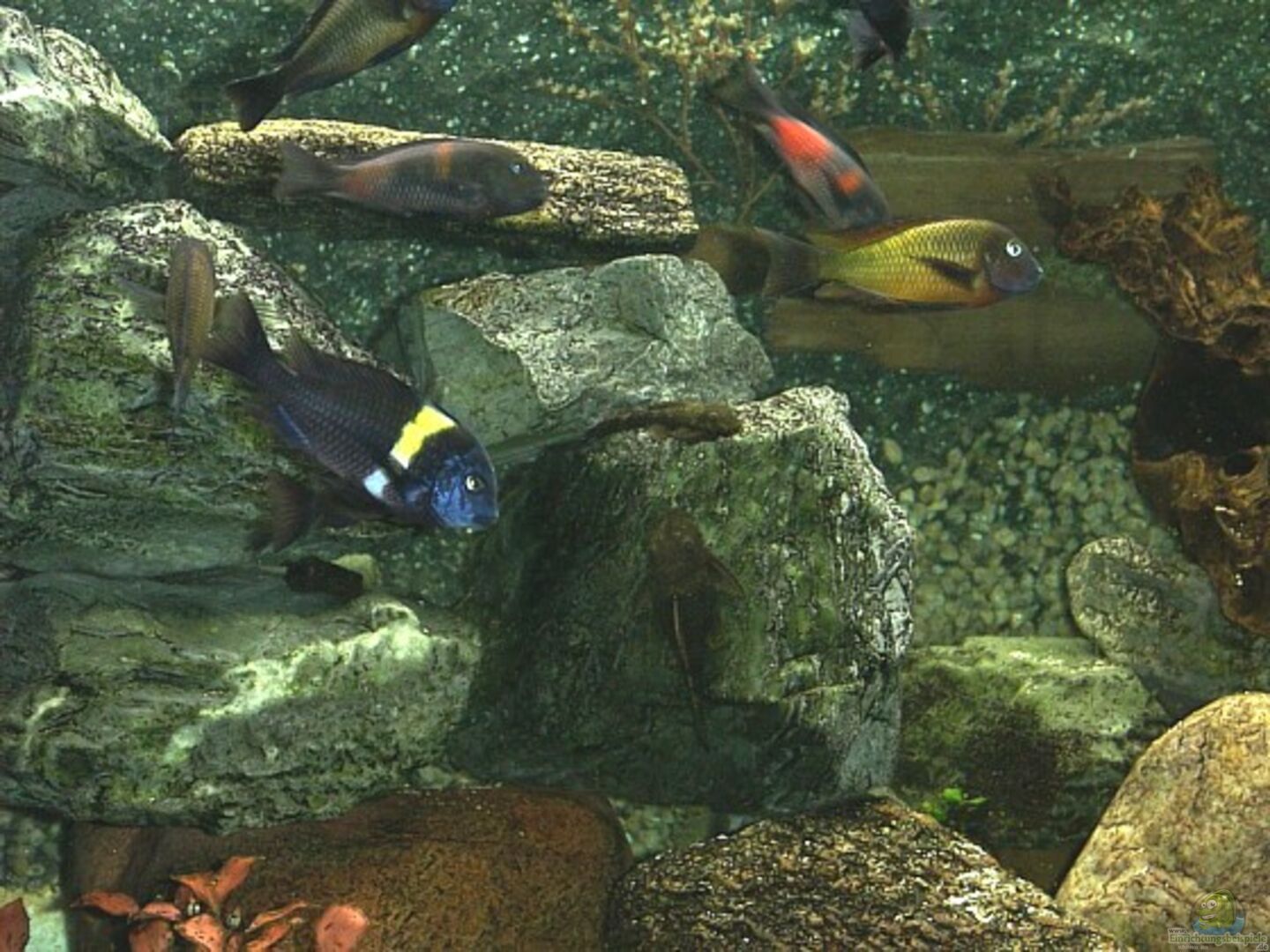 Ich habe das Aquarium im Dezember 2003 neu als reines Tropheus-Becken mit Jungfischen 4-6cm eingerichtet. Derzeitiger Besatz: 11 Stück Tropheus moori bulu point 10 Stück Tropheus moori ilangi 12 Stück Tropheus duboisi maswa Weiterhin tummeln sich diverse Ancistrus-Arten darin.