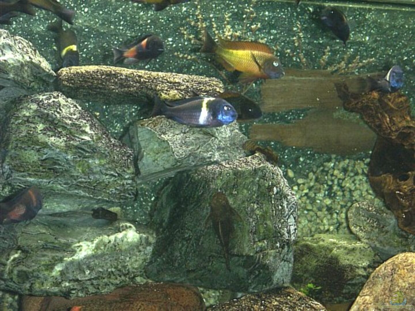 Ich habe das Aquarium im Dezember 2003 neu als reines Tropheus-Becken mit Jungfischen 4-6cm eingerichtet. Derzeitiger Besatz: 11 Stück Tropheus moori bulu point 10 Stück Tropheus moori ilangi 12 Stück Tropheus duboisi maswa Weiterhin tummeln sich diverse Ancistrus-Arten darin.