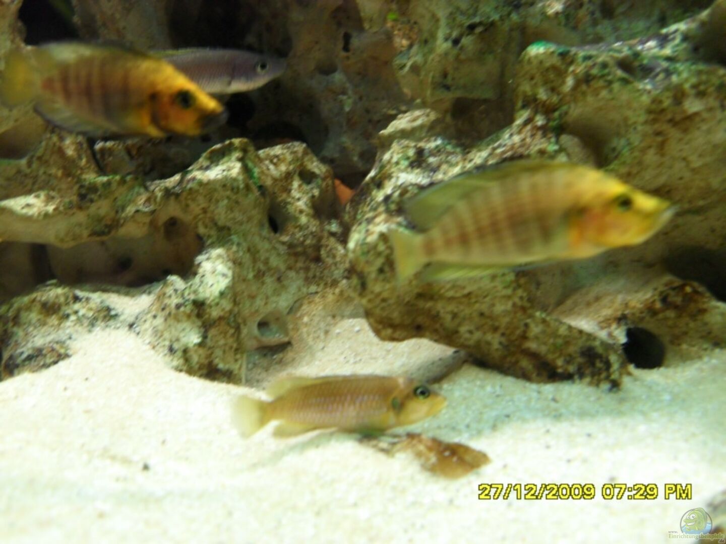 Um alle Wasserzonen auszunutzen habe ich folgenden Besatz: 2/2 Lamprologus Ocellatus gold 4/5 Cyprichromis leptosoma tricolor 1/1 Altolamprologus compressiseps golden head 1/1 Eretmodus cyanostictus kigoma 2 Synodontis petrikola 3 Planorbarius corneus (Posthornschnecken)