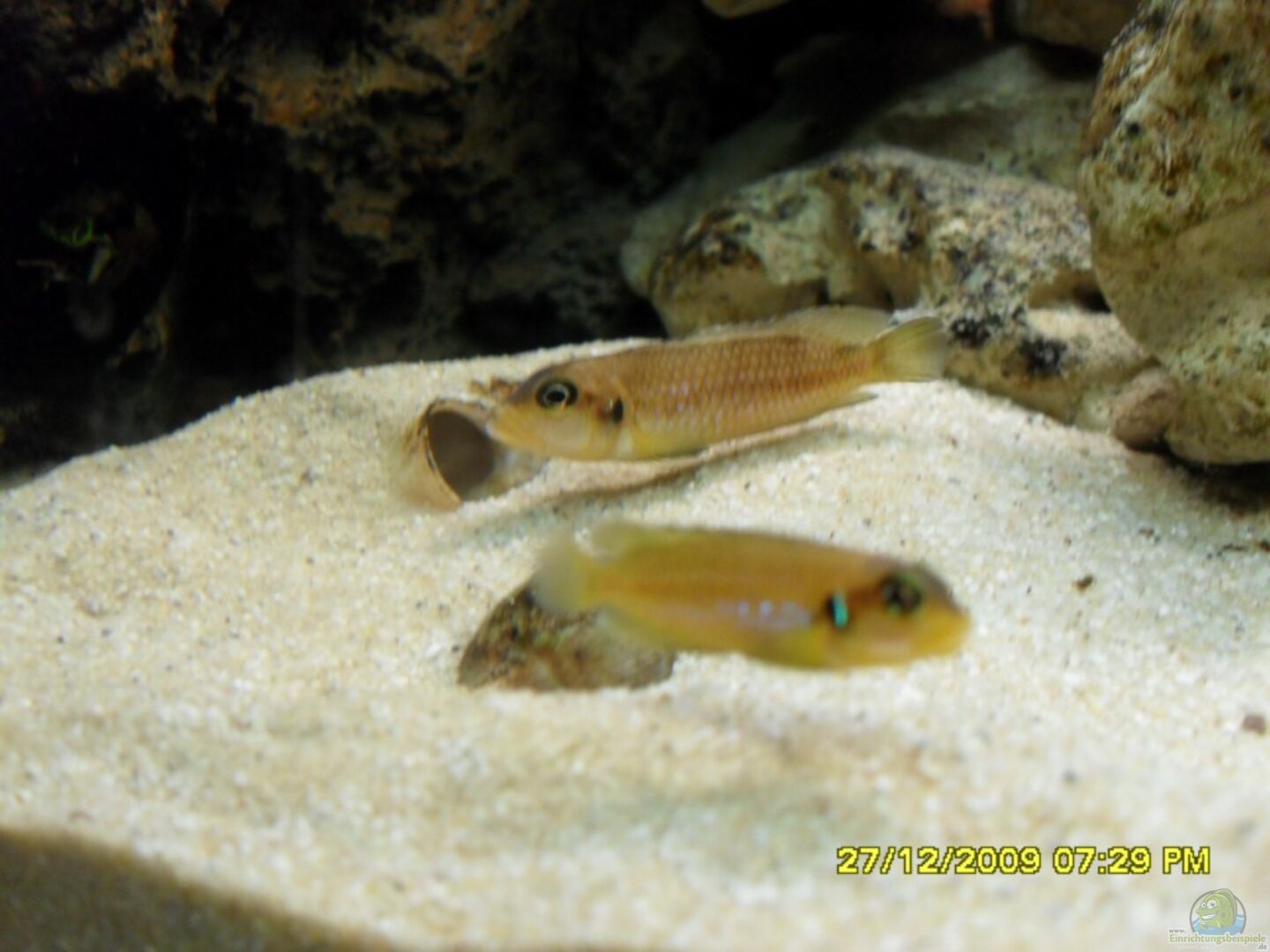 Um alle Wasserzonen auszunutzen habe ich folgenden Besatz: 2/2 Lamprologus Ocellatus gold 4/5 Cyprichromis leptosoma tricolor 1/1 Altolamprologus compressiseps golden head 1/1 Eretmodus cyanostictus kigoma 2 Synodontis petrikola 3 Planorbarius corneus (Posthornschnecken)