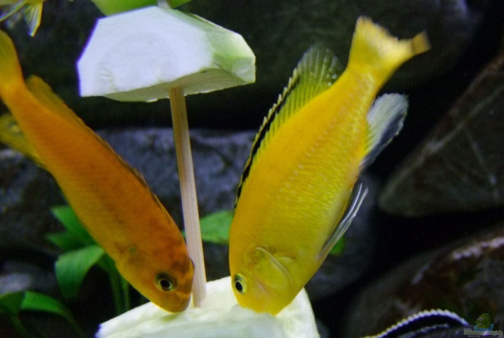 Labidochromis Cearuleus (Yellow) 1/3 Pseudotropheus acei 1/3 Iodotropheus spengerae 1/3 Melanochromis johanni 1/3 Dimidichromis compressiceps 2 (werden das Becken aber wieder verlassen, wenn sie grö??er sind gehen sie zu einem Bekannten ins grö??ere Becken)