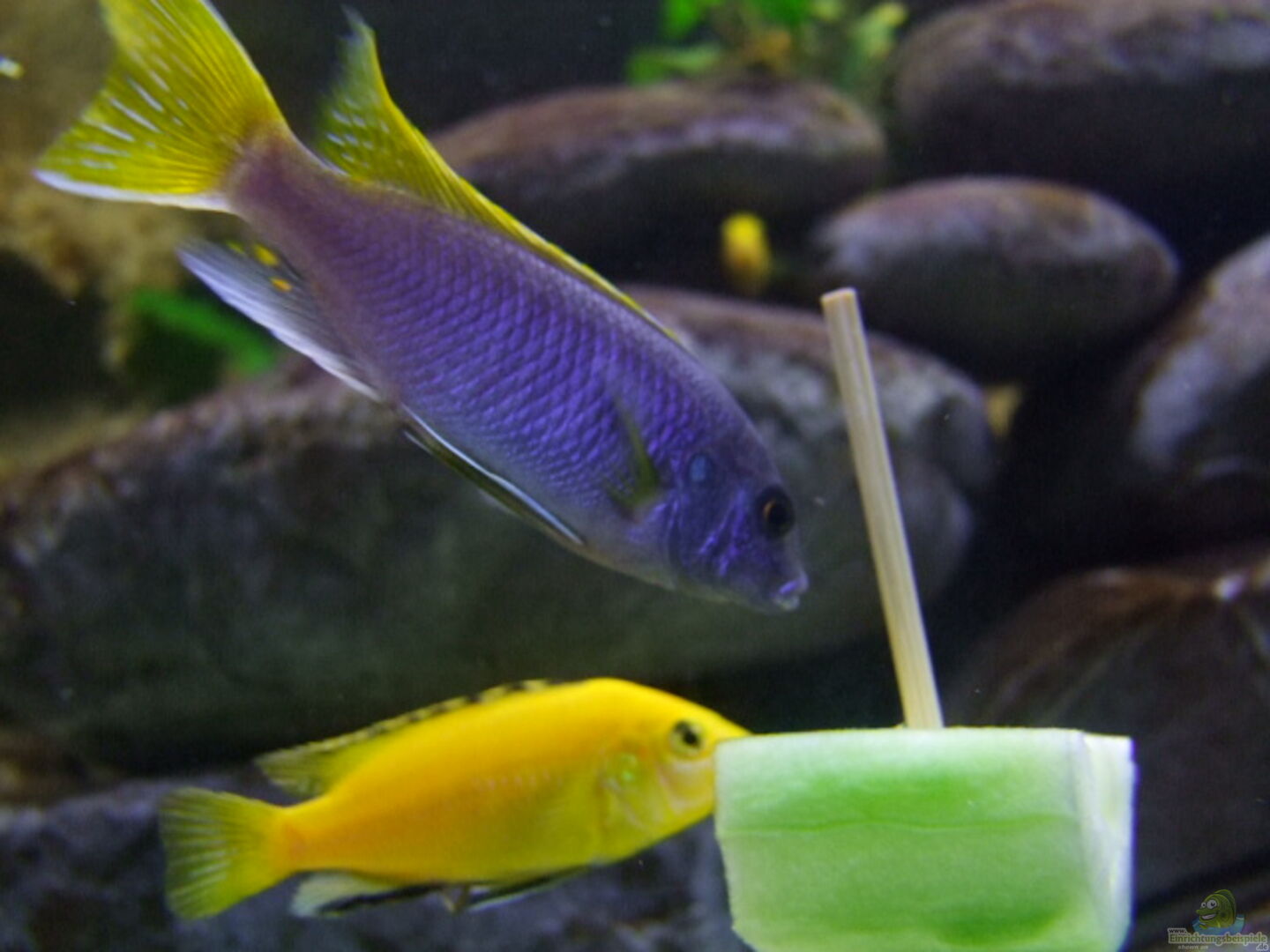 Labidochromis Cearuleus (Yellow) 1/3 Pseudotropheus acei 1/3 Iodotropheus spengerae 1/3 Melanochromis johanni 1/3 Dimidichromis compressiceps 2 (werden das Becken aber wieder verlassen, wenn sie grö??er sind gehen sie zu einem Bekannten ins grö??ere Becken)