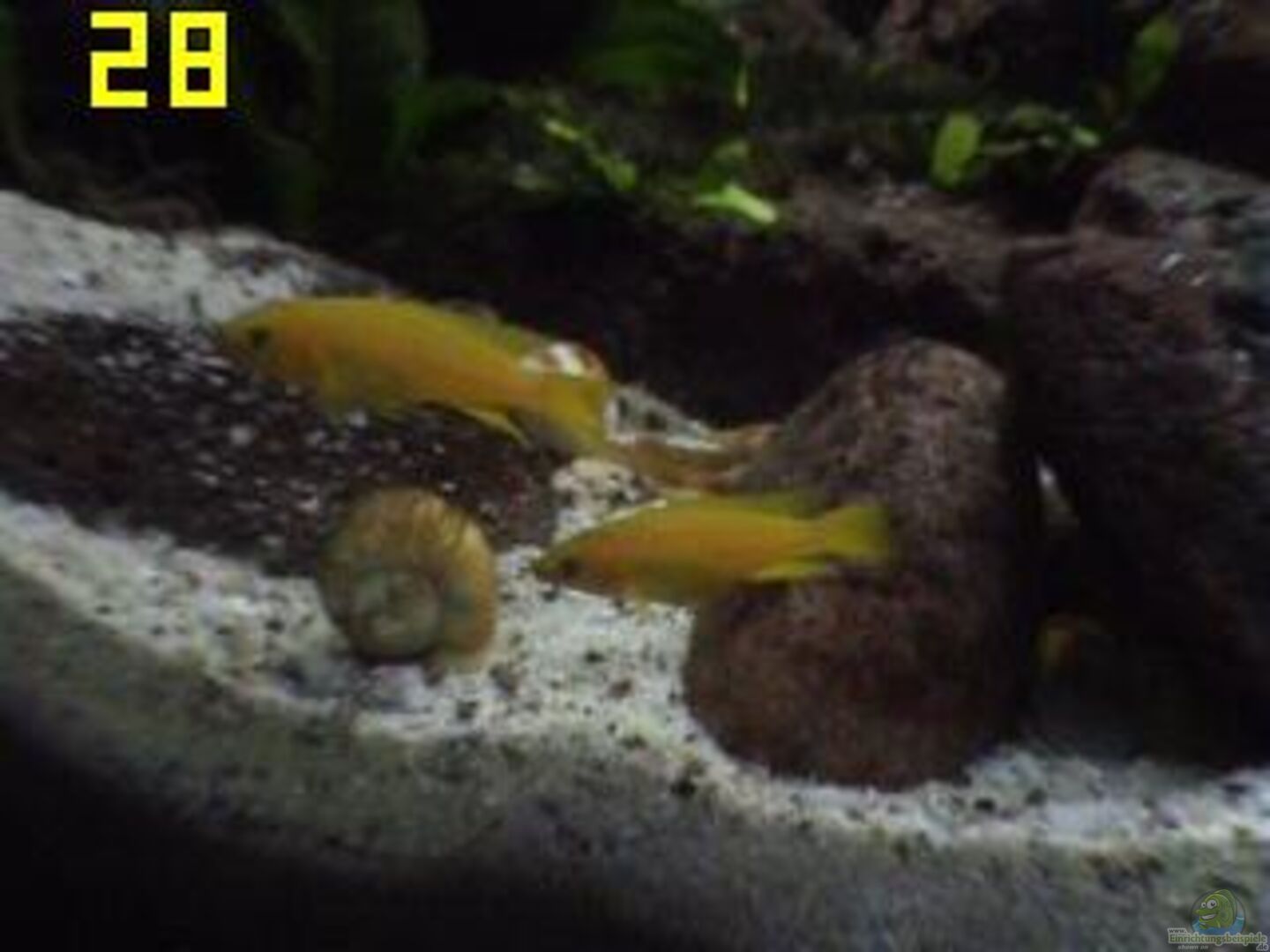 3/12 x Tropheus spec. aff. moorii Bemba III ´Red Flame´ 2/2 (?) x Tropheus duboisi Kigoma (zwei sind noch niht umgefährbt haben hätten sie aber schon längst tun sollen (recht gro??) daher ist das Geschlechterverhältnis unklar, kann das daran liegen, dass das auch Männchen sind, die sch nicht rauen????) 2/1 x Lamprologus occellatus ´Gold´ (zweite Männchen kommt bald raus) 1/2x Altolamprologus compressicceps ´Goldkopf´ 1/3x Neolamprologus leleupi 13x Neolamprologus [...]