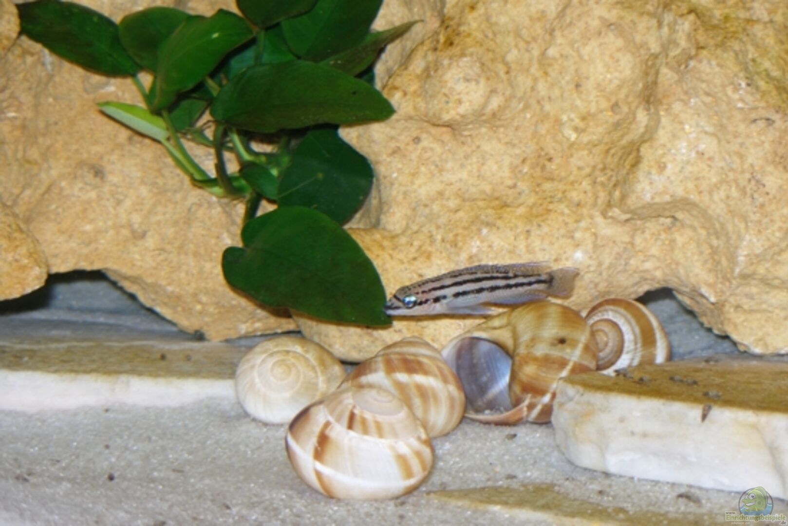 Besatz 23.01.2005: - 4 Neolamprologus daffodil pulcher - 3 Neolamprologus multifasciatus - 2 Juliochromis dickfeldi (1M/1W) - etliche Turmdeckel- und Blasenschnecken