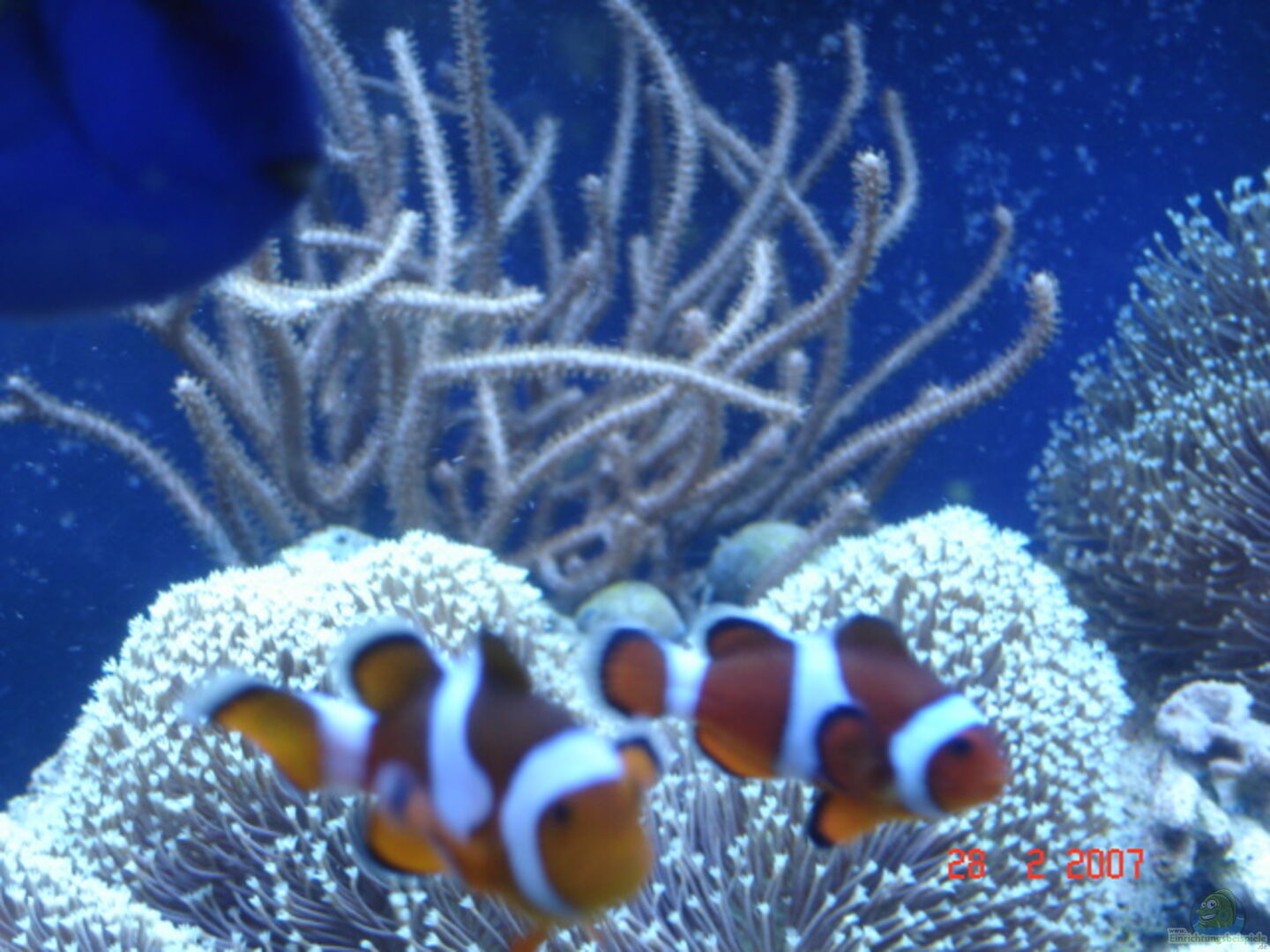 1 Palettendok., 1 Pärchen Anemonenfische, 1 Hawaidok, 1 Segelflossenbader, 2 Grundeln, 1 Lippfisch, 1 Schleimfisch, viele Einsiedler, Schnecken, 1 Kardinalsgarnele, 2 Harlekingarnelen und ein Diadem Seeigel Weich.- Lederkorallen, sowie einige Steinkorallen und einen roten Schwamm