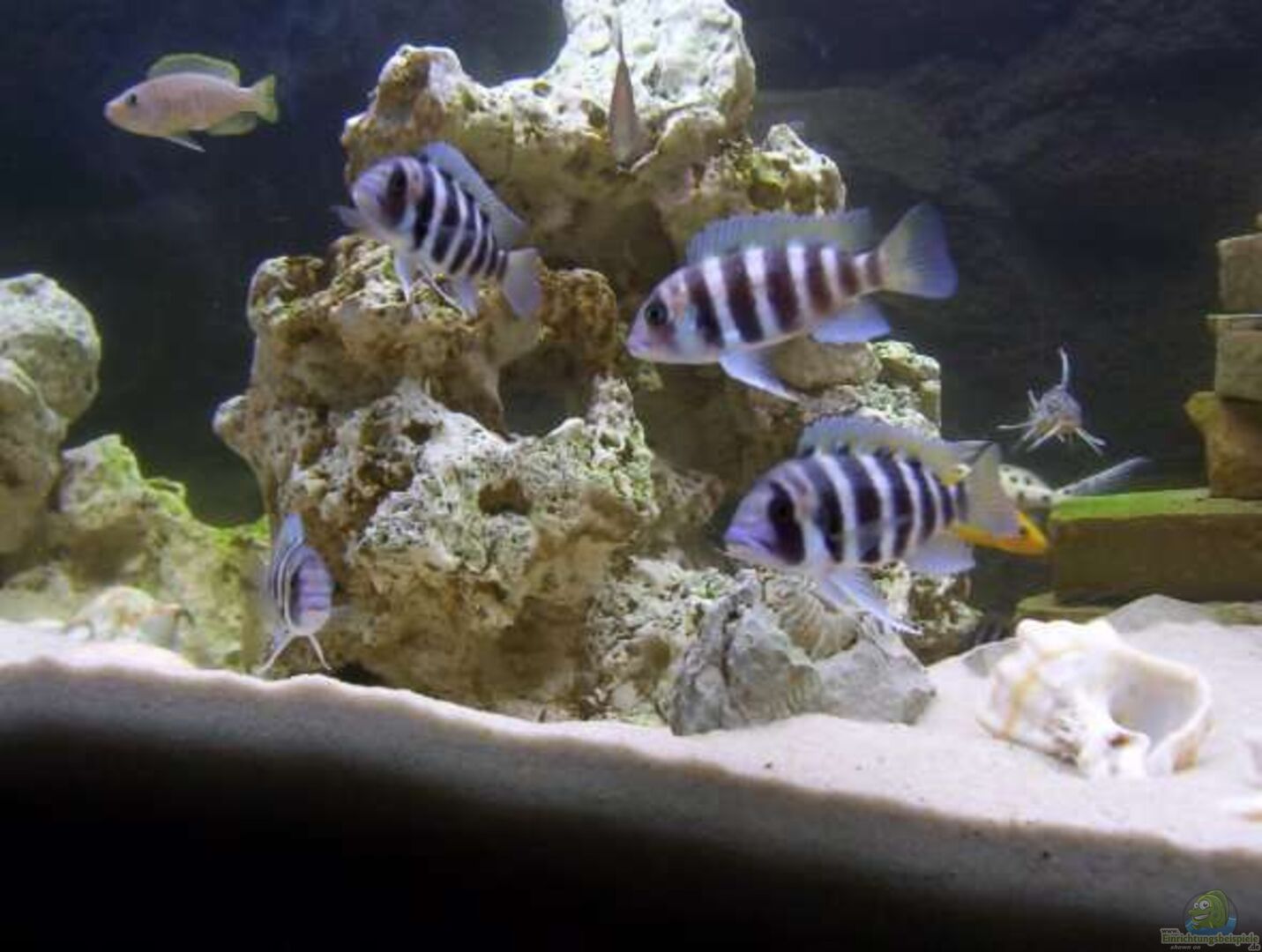 3 Ancistrus dolichopterus 5 Cyphotilapia frontosa kigoma 7-Streifen 1 Neolamprologus longior (M) 4 Neolamprologus similis (2M/2W) plus Nachwuchs 1 Cyprichromis leptosoma (W) 1 Synodontis courteti 3 Synodontis multipunktatus 2 Synodontis nigrita Mit ist bewu??t, dass dieser Fischbesatz für diese Beckengrö??e und in der Zusammensetzung alles andere als optimal ist. Plane daher ein grö??eres Becken, doch da die Frontosa erst etwa 1 1/2 Jahre alt sind, habe ich noch ein wenig Zeit [...]