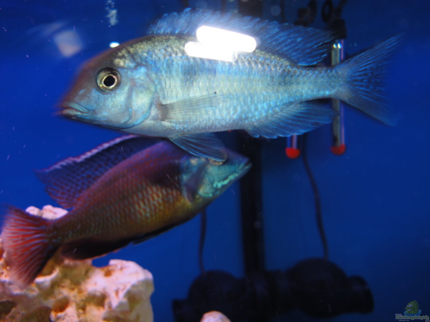 Aktueller Besatz : 1 Protomelas taeniolatus M 1 Cyrtocara moori W 2 Melanochromis johannii 1 M 1 W 2 Aulonocara Fire Fish 1 M 1 W 5 Labidochromis yellow 3 M 2 W 5 ´Zebra´ Jungfische ? 3 Antennenwelse 2 M 1 W