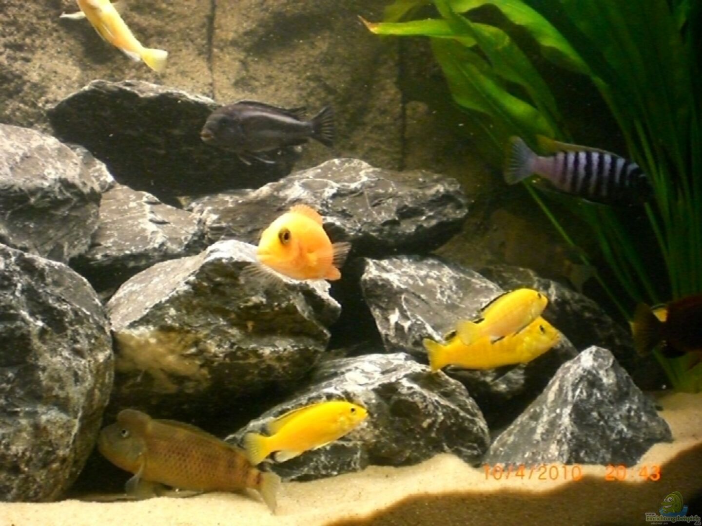 Folgender Besatz ist aus meinem alten Becken ins neue Becken umgezogen: Sciaenochromis Ahli 1/2 Labidochromis yellow 3/7 Aulonocara firefish 1/2 Maylandia zebra red top 1/3 Melanochromis maingano 1/3 Pseudotropheus msobo magunga 1/1 Nachfolgende Waisenkinder, die ich mal übernommen habe, fühlen sich unseres Erachtens sehr wohl und werden auch bleiben: Steatocranus casuarius 2/1