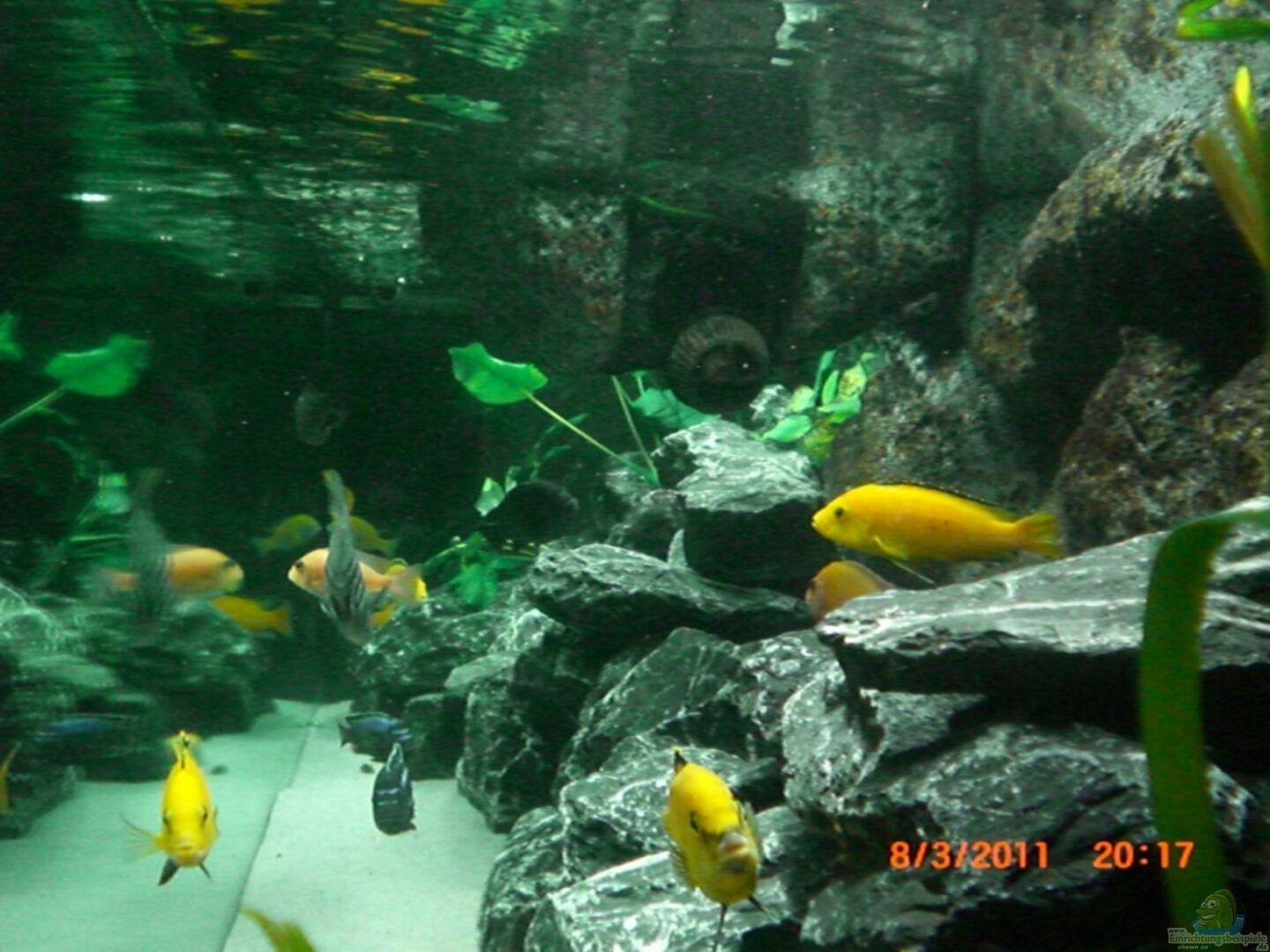 Folgender Besatz ist aus meinem alten Becken ins neue Becken umgezogen: Sciaenochromis Ahli 1/2 Labidochromis yellow 3/7 Aulonocara firefish 1/2 Maylandia zebra red top 1/3 Melanochromis maingano 1/3 Pseudotropheus msobo magunga 1/1 Nachfolgende Waisenkinder, die ich mal übernommen habe, fühlen sich unseres Erachtens sehr wohl und werden auch bleiben: Steatocranus casuarius 2/1