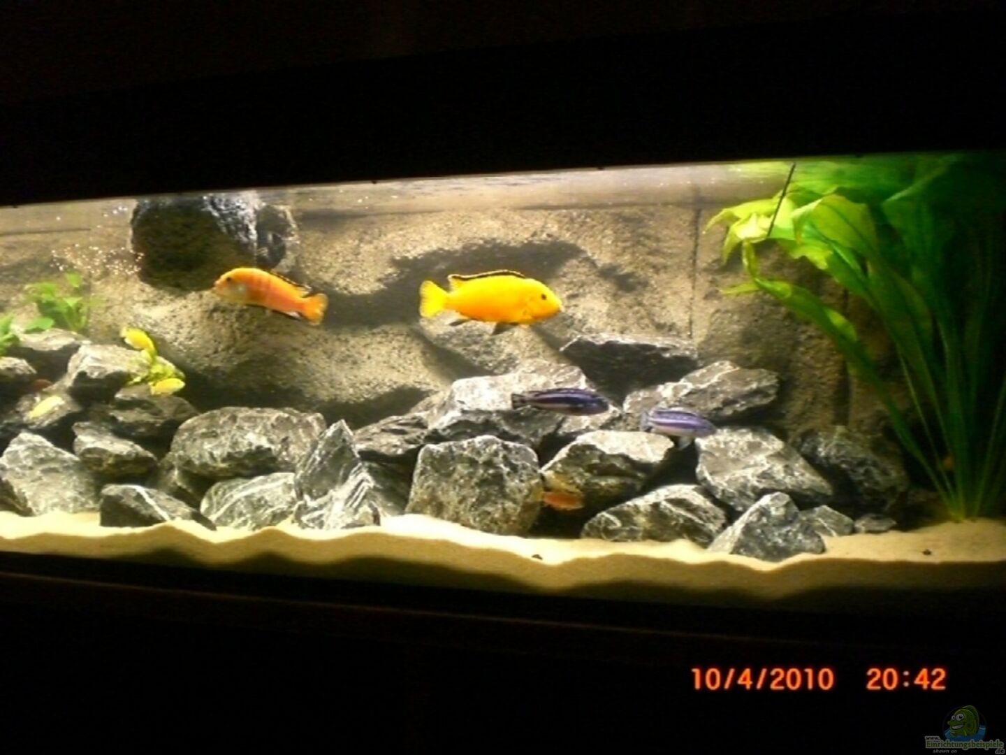 Folgender Besatz ist aus meinem alten Becken ins neue Becken umgezogen: Sciaenochromis Ahli 1/2 Labidochromis yellow 3/7 Aulonocara firefish 1/2 Maylandia zebra red top 1/3 Melanochromis maingano 1/3 Pseudotropheus msobo magunga 1/1 Nachfolgende Waisenkinder, die ich mal übernommen habe, fühlen sich unseres Erachtens sehr wohl und werden auch bleiben: Steatocranus casuarius 2/1