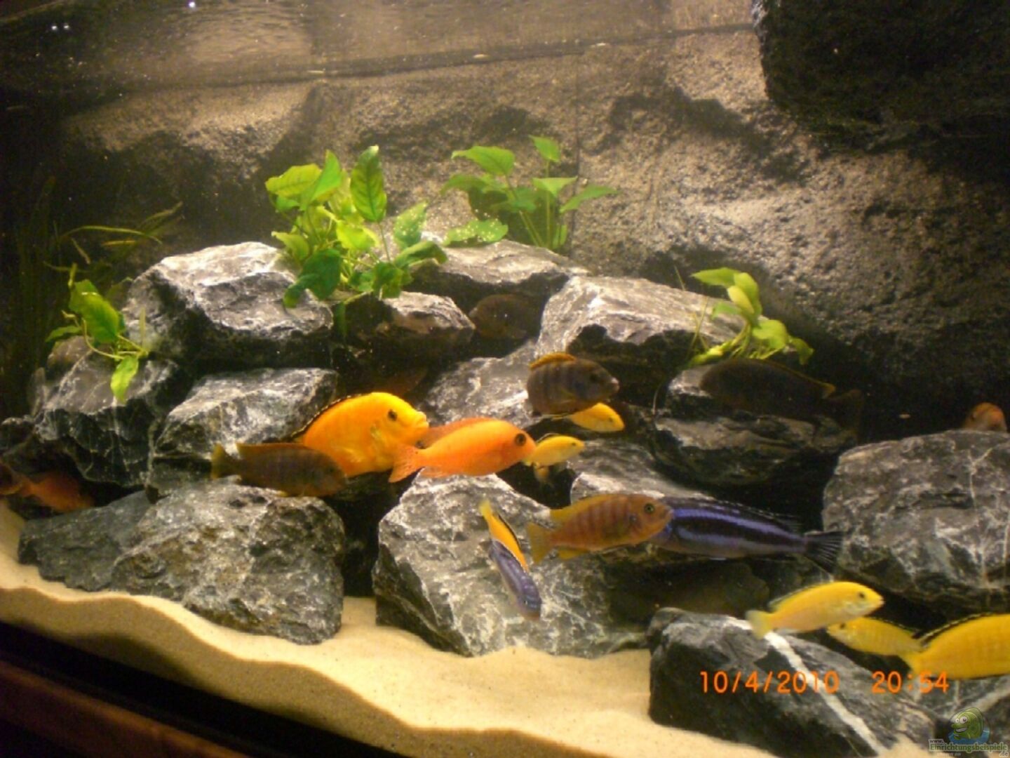 Folgender Besatz ist aus meinem alten Becken ins neue Becken umgezogen: Sciaenochromis Ahli 1/2 Labidochromis yellow 3/7 Aulonocara firefish 1/2 Maylandia zebra red top 1/3 Melanochromis maingano 1/3 Pseudotropheus msobo magunga 1/1 Nachfolgende Waisenkinder, die ich mal übernommen habe, fühlen sich unseres Erachtens sehr wohl und werden auch bleiben: Steatocranus casuarius 2/1
