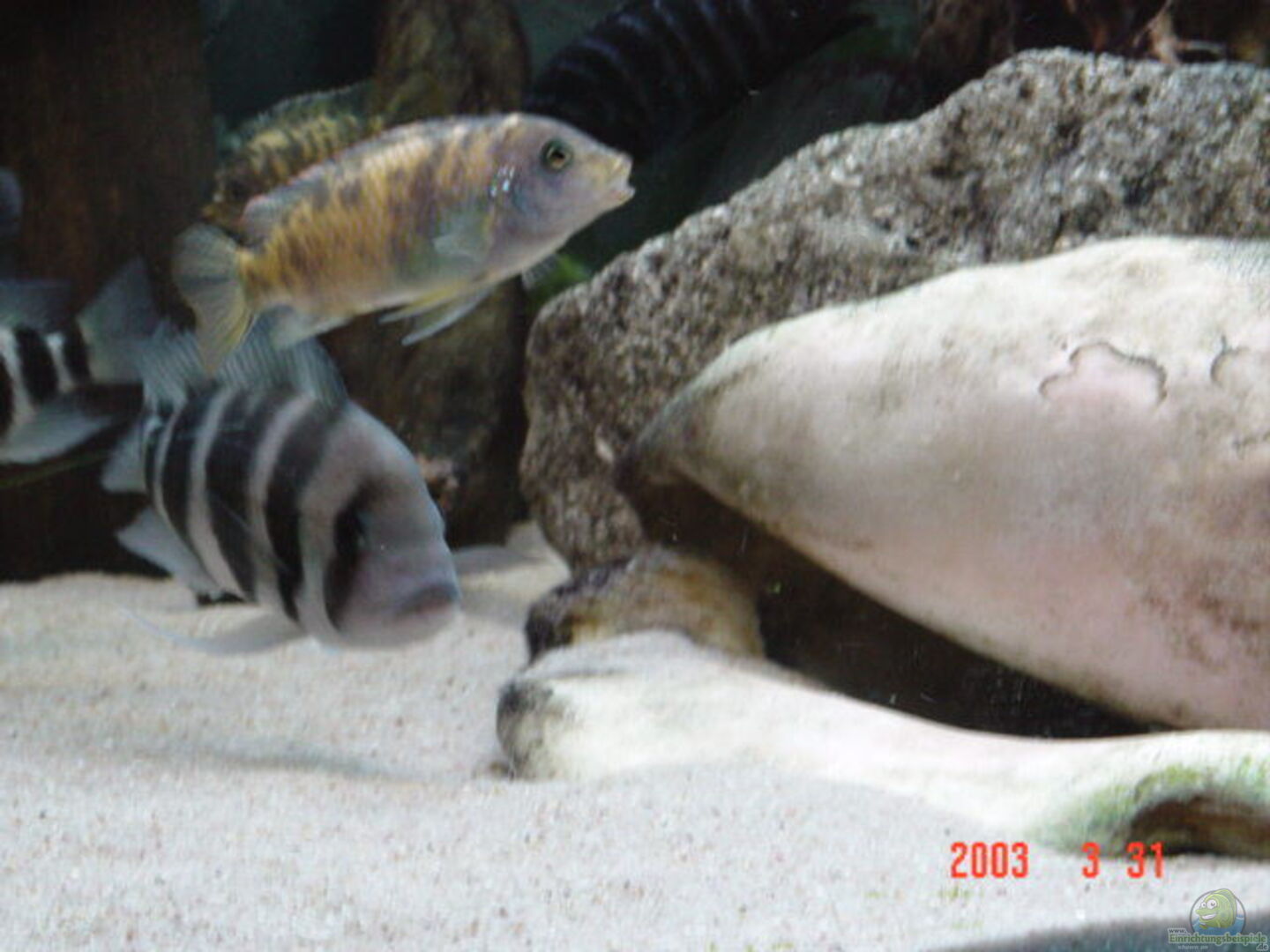 3 x Aulonocara spec. ´lupingo´ 1M/2W 2 x Wei??rückenahli 1M/1W 4 x Cyphotilapia Frontosa 4 x Labidochromis caeruleus yellow 4 x Prinzessin von Burundi 3 x kleine Corydoras - Welse 1 x Harnischwels ca. 40 cm gro?? - bis jetzt!!! 3 x Pseudotropheus agressive 4 x Aulonocara ´ichwei??nichtwelche´