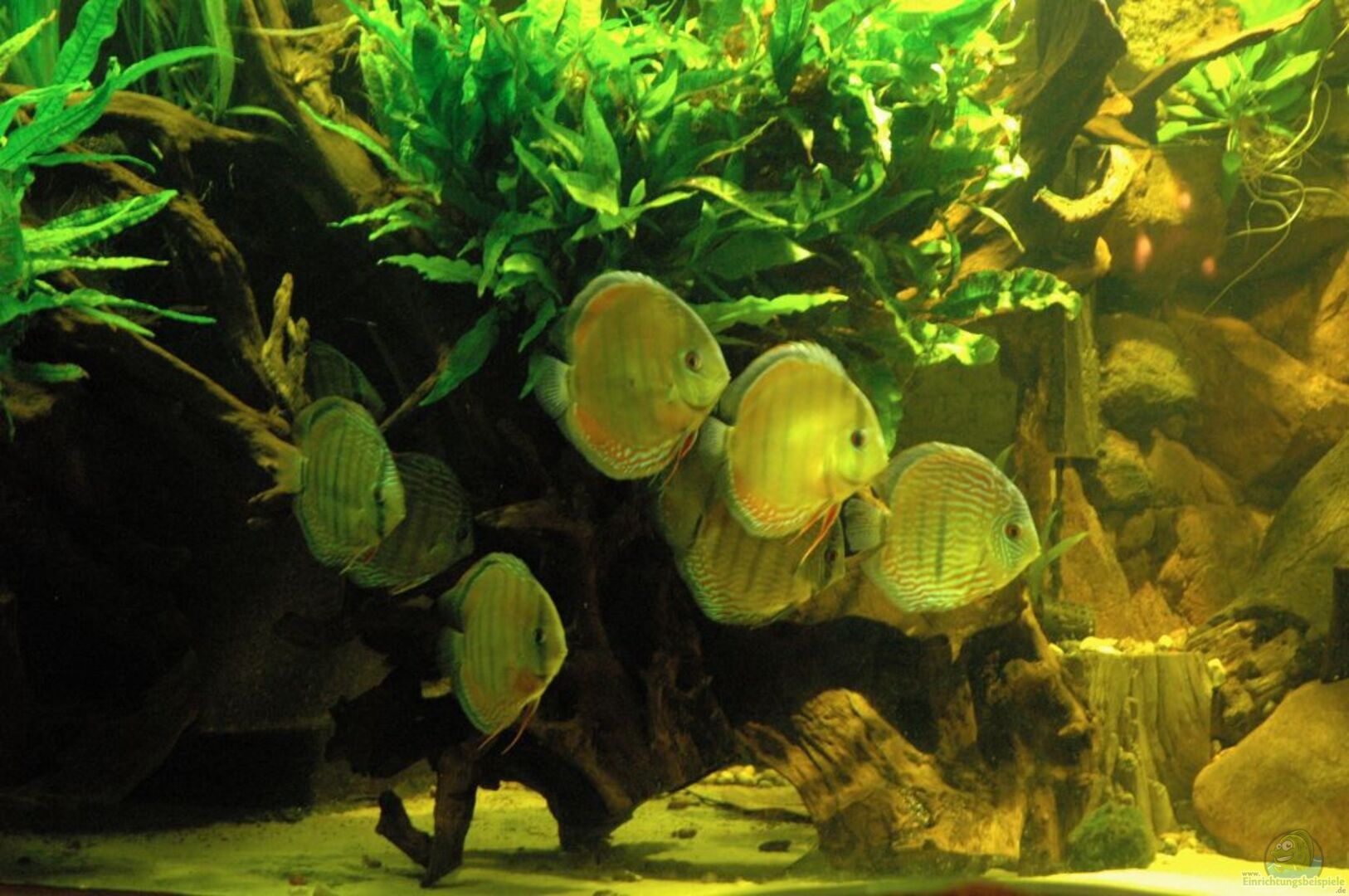 4 Paraconi Diskus WF - 3 Royal Blue Diskus WF 3 Ancistrus L144 rot + 1 x unbemerkter Nachwuchs (diese Ancistrusart bleibt relativ klein) Corys, Rennschnecken, Amano- und Fächer-Garnelen und je ein Schwung rote Neon und Kirschflecksalmler