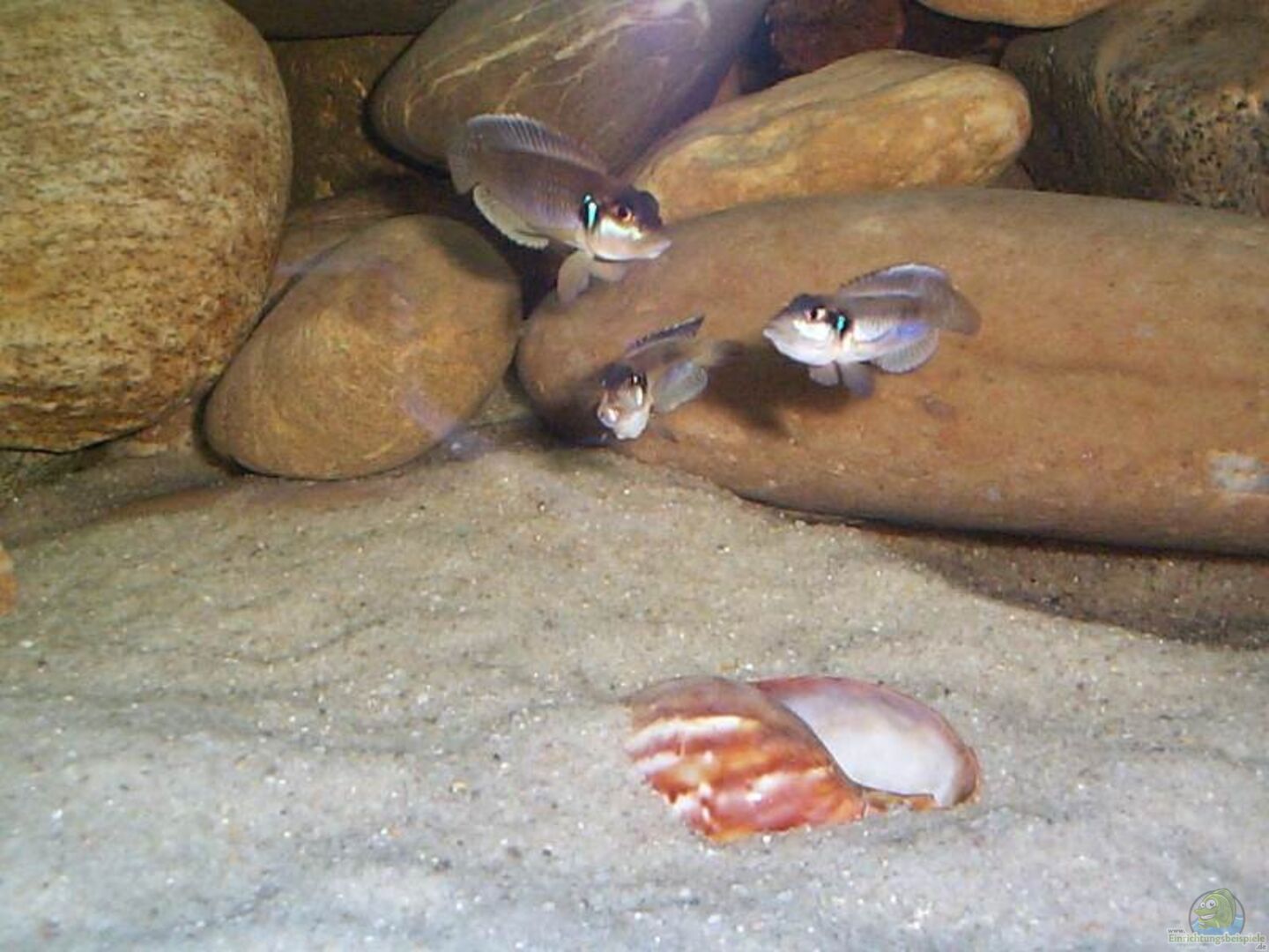 Cyphotilapia frontosa - 3 M und 3 W Cyprichromis leptosoma - 1 M und 2 W (wir wissen, dass die Gruppe grö??er sein sollte, aber leider haben wir nur drei Tiere bekommen und es ist momentan sehr schwierig (zumindest hier bei uns in der Gegend) an diese wunderschönen Fische ranzukommen)...aber da schon Nachwuchs da ist, wird die Gruppe sicherlich schnell grö??er :-)) Altolamprologus calvus juv. - 1 M und 1 W Julidochromis transcriptus - 4 Jungtiere, daher geschlechtlich [...]