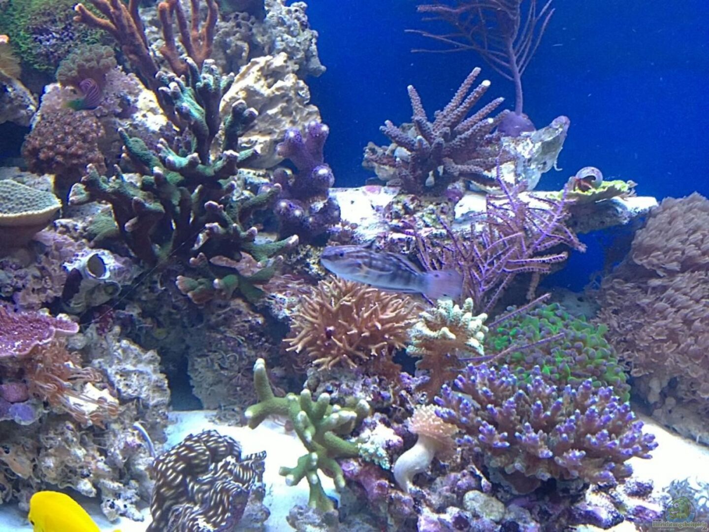 Fische: 2x Amphiprion ocellaris- Falscher Clown 2xZebrasoma flavescens- Zitronenflossen-Doktorfisch Hawaii Doktor Ctenochaetus tominiensis- Borstenzahndoktor Amblygobius phalaena- Bagger Grundel Pterosynchiropus splendidus- Mandarinfisch Leierfisch Salarias fasciatus- Juwelen Felshüpfer Pictichromis paccagnellae- Nymphen Zwergbarsch Pholidichthys leucotaenia- Weissstreifen Aalgrundel Wirbellose: Heteractis crispa Entacmaea quadricolor Ciliopagurus strigatus Calcinus [...]