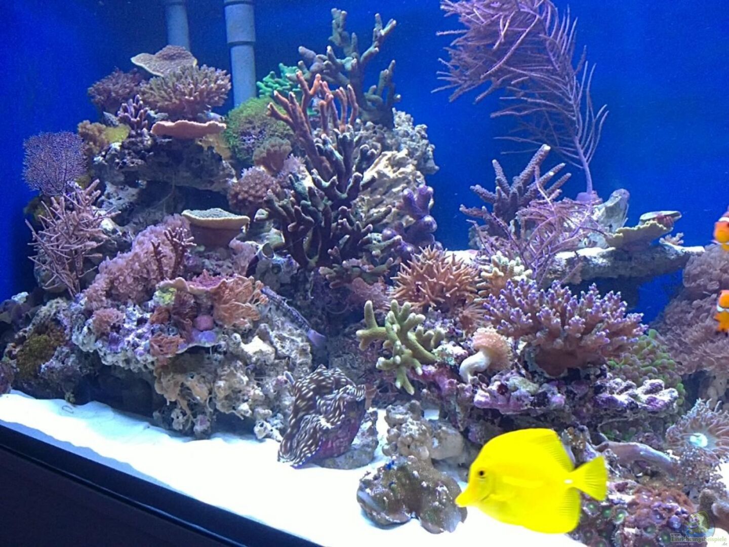 Fische: 2x Amphiprion ocellaris- Falscher Clown 2xZebrasoma flavescens- Zitronenflossen-Doktorfisch Hawaii Doktor Ctenochaetus tominiensis- Borstenzahndoktor Amblygobius phalaena- Bagger Grundel Pterosynchiropus splendidus- Mandarinfisch Leierfisch Salarias fasciatus- Juwelen Felshüpfer Pictichromis paccagnellae- Nymphen Zwergbarsch Pholidichthys leucotaenia- Weissstreifen Aalgrundel Wirbellose: Heteractis crispa Entacmaea quadricolor Ciliopagurus strigatus Calcinus [...]