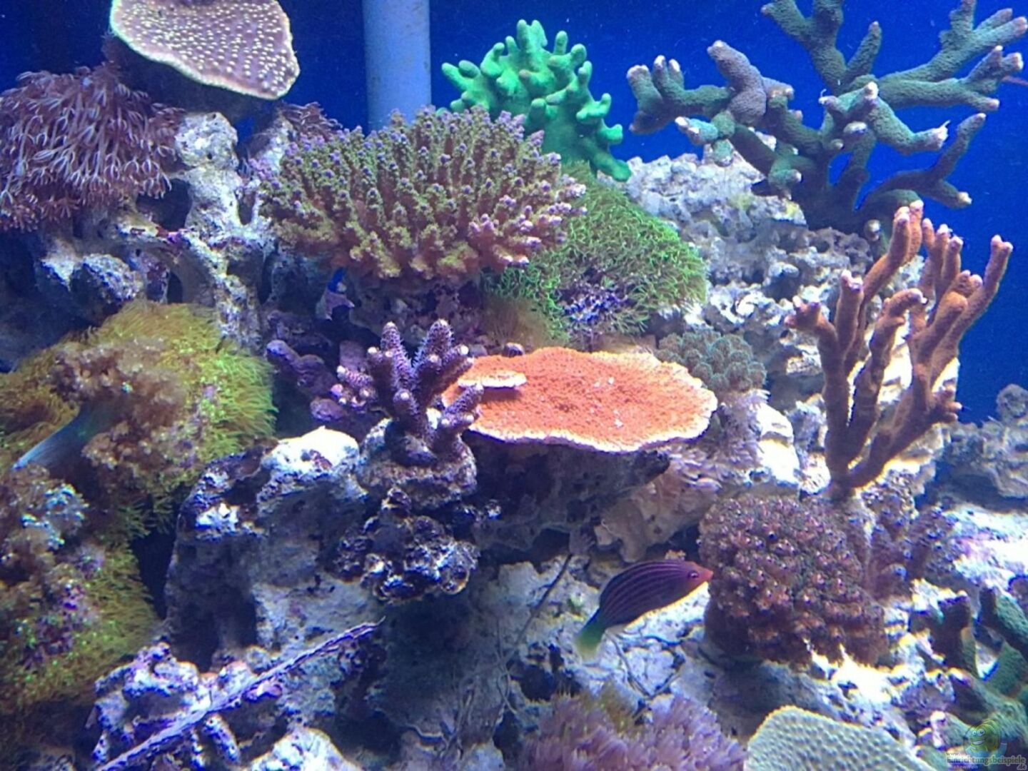 Fische: 2x Amphiprion ocellaris- Falscher Clown 2xZebrasoma flavescens- Zitronenflossen-Doktorfisch Hawaii Doktor Ctenochaetus tominiensis- Borstenzahndoktor Amblygobius phalaena- Bagger Grundel Pterosynchiropus splendidus- Mandarinfisch Leierfisch Salarias fasciatus- Juwelen Felshüpfer Pictichromis paccagnellae- Nymphen Zwergbarsch Pholidichthys leucotaenia- Weissstreifen Aalgrundel Wirbellose: Heteractis crispa Entacmaea quadricolor Ciliopagurus strigatus Calcinus [...]