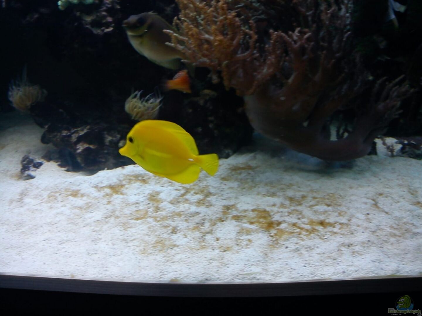 2 Zebrasoma flavescens, 2 Amphiprion ocellaris, 1 Cirrhilabrus flavidorsalis, 2 Labroides dimidiatus, 2Macropharyngodon bipartitus, 2 Valenciennea puellaris, 2 Cirrhitichthys falco, 2 Acreichthys tomentosus, 1 Gramma loreto, 2 Labroides dimidiatus, 1 Anampses twistii Diverse Weich-/Lederkorallen, z.B pumpende und nicht pumpende Xenien, Sarcophyton spec. div. Bäumchen, grüne Krustenanemonen, 2 rote Entacmaea quadricolor, Gorgonien, davon eine flächig wachsende Erythropodium caribaeorum uvm. Steinkorallen:z.B. [...]