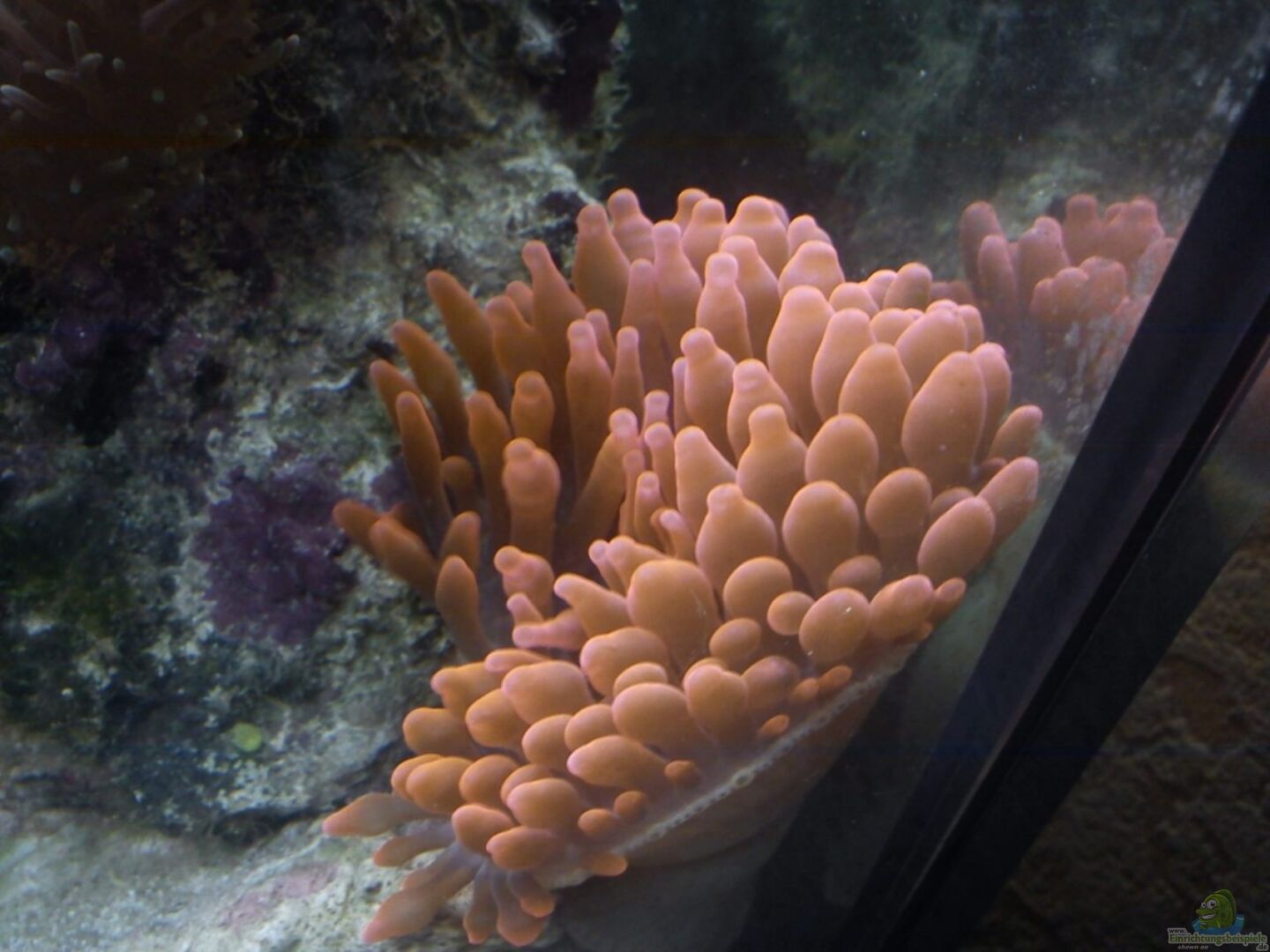2 Zebrasoma flavescens, 2 Amphiprion ocellaris, 1 Cirrhilabrus flavidorsalis, 2 Labroides dimidiatus, 2Macropharyngodon bipartitus, 2 Valenciennea puellaris, 2 Cirrhitichthys falco, 2 Acreichthys tomentosus, 1 Gramma loreto, 2 Labroides dimidiatus, 1 Anampses twistii Diverse Weich-/Lederkorallen, z.B pumpende und nicht pumpende Xenien, Sarcophyton spec. div. Bäumchen, grüne Krustenanemonen, 2 rote Entacmaea quadricolor, Gorgonien, davon eine flächig wachsende Erythropodium caribaeorum uvm. Steinkorallen:z.B. [...]