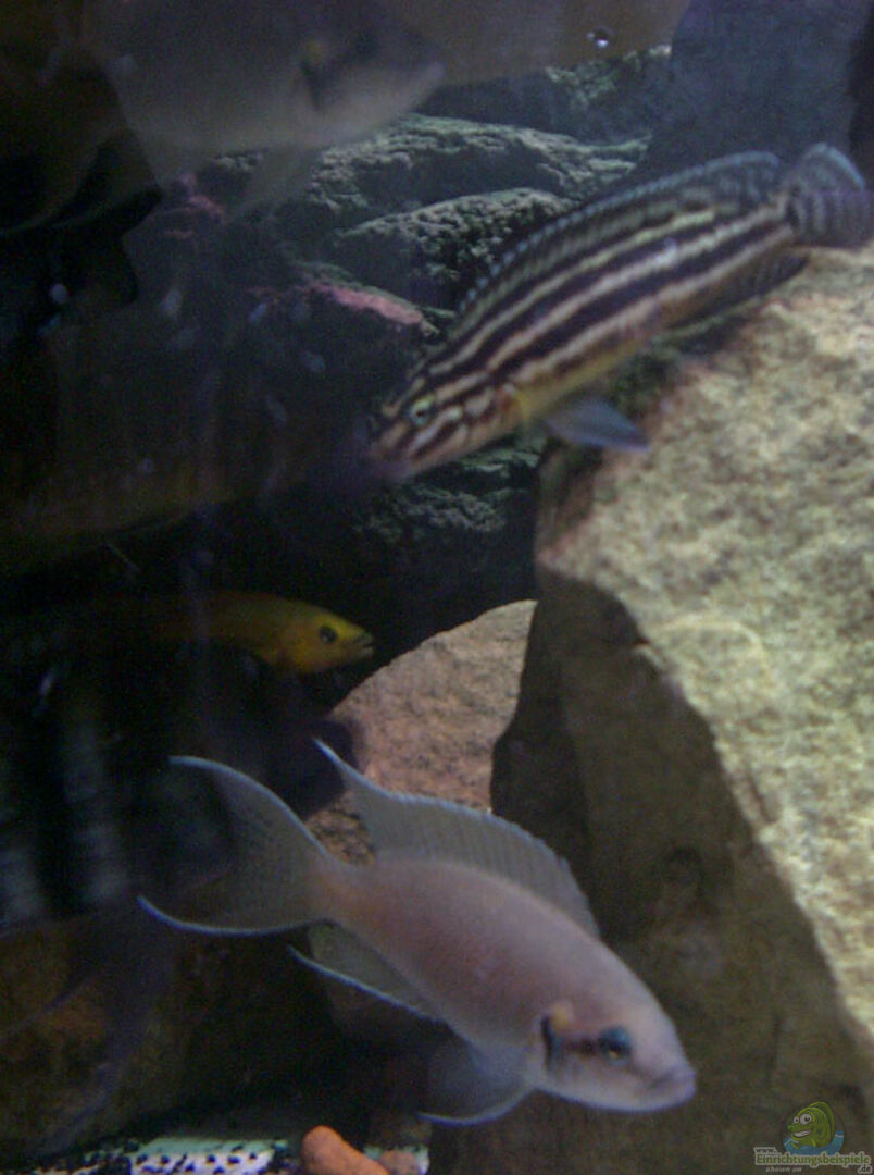 10xCyphotilapia frontosa (10 bis 20cm) 2x Altolamprologus compressiceps ung. 8 adulte Julidochromis, da viele geschenkt bekommen und von anderen aufgeloesten Aquarien uebernommen sind die gemischt, (ich vermute J. marlieri + J. transcriptus) Jungtiere in verschiedensten Groessen lassen sich nicht nachrechnen 2x Neolamprologus brichardi + unzaehlige Jungtiere 4x Lamprologus lelupi 1 adulter Synodontis multipunctatus + 3 Jungtiere 1x Glyptoperichthys gibbiceps (ueber [...]