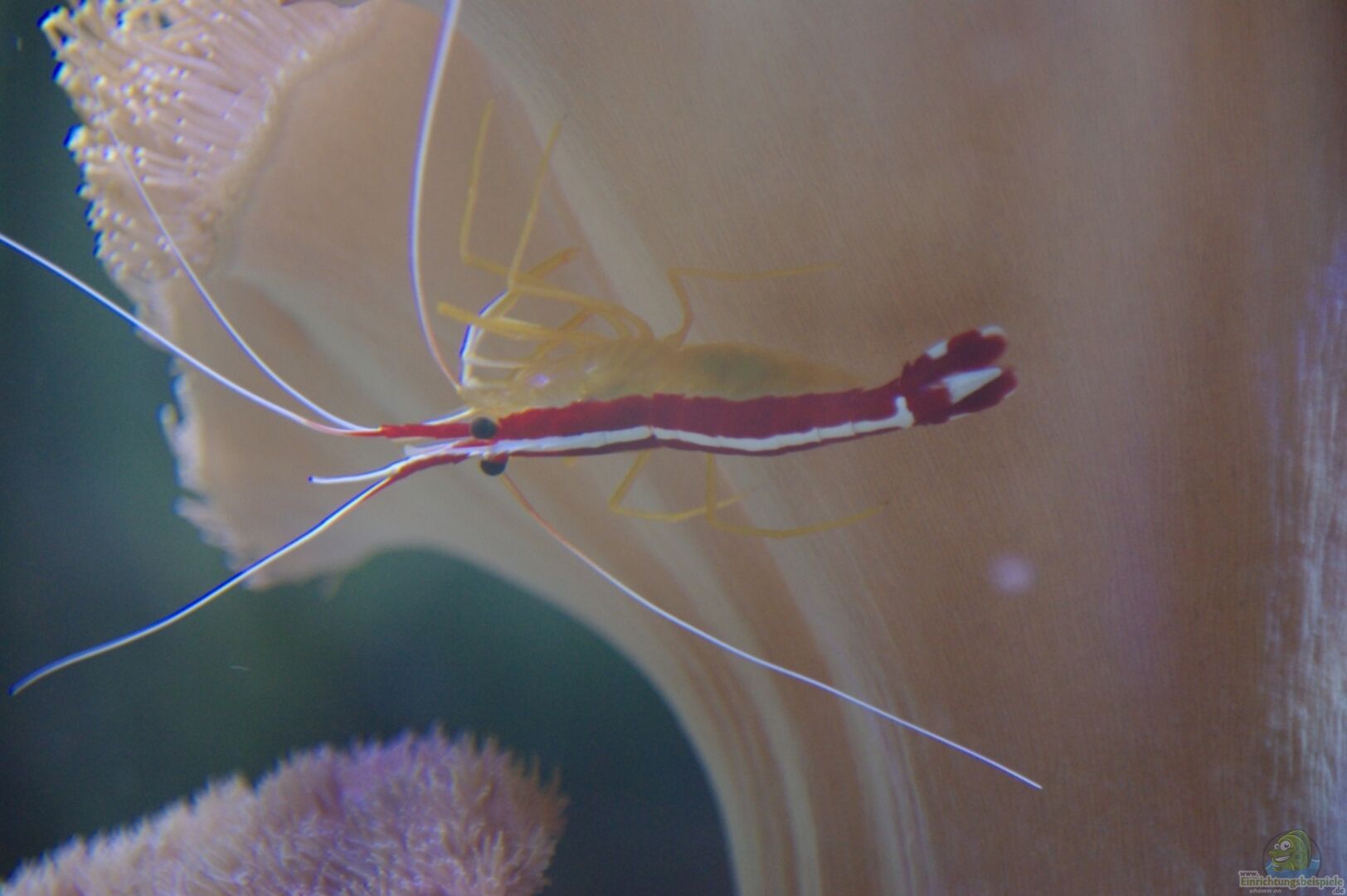 Fische: 3x Amphiprion ocellaris 2x Centropyge loricula 1x Zebrasoma flavescens 4x Sphaeramia nematoptera 4x Chromis viridis 1x Acreichthys tomentosus (zur Bekämpfung der Aiptasia) Wirbellose: div. Schnecken (darunter: Turbo tuberculosus, Cenchritis muricatus, Columbella mercatoria) Einsiedlerkrebse 3x Lysmata amboinensis 2x Lysmata debelius div. Seesterne und Schlangenseesterne div. Krabben (unbestimmt - dürften sich mit Lebendgestein und Korallen eingeschlichen haben) Anemonen: Entacmaea [...]