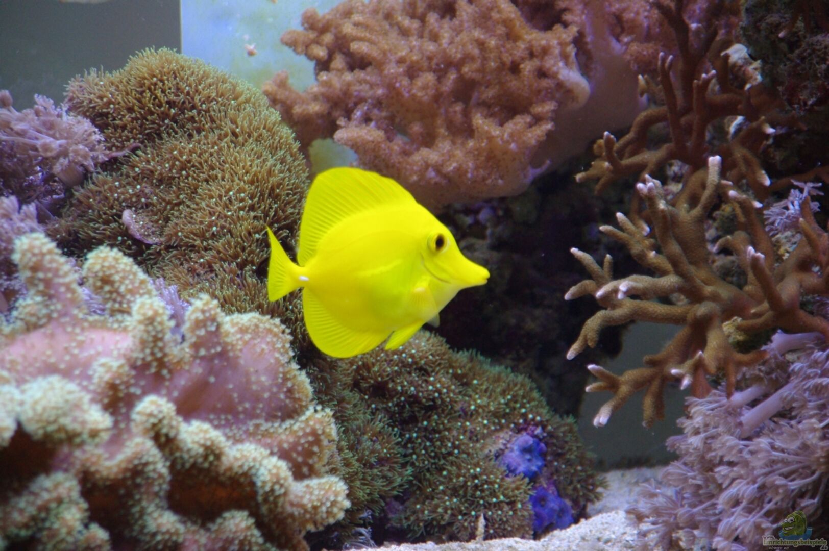 Fische: 3x Amphiprion ocellaris 2x Centropyge loricula 1x Zebrasoma flavescens 4x Sphaeramia nematoptera 4x Chromis viridis 1x Acreichthys tomentosus (zur Bekämpfung der Aiptasia) Wirbellose: div. Schnecken (darunter: Turbo tuberculosus, Cenchritis muricatus, Columbella mercatoria) Einsiedlerkrebse 3x Lysmata amboinensis 2x Lysmata debelius div. Seesterne und Schlangenseesterne div. Krabben (unbestimmt - dürften sich mit Lebendgestein und Korallen eingeschlichen haben) Anemonen: Entacmaea [...]
