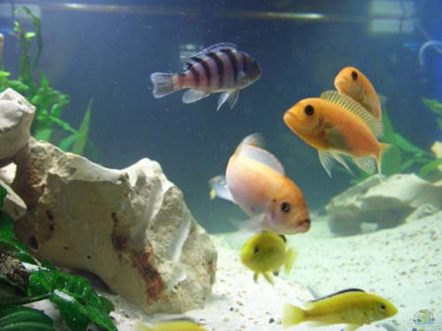 2/3 Pseudotropheus demasoni 2/3Pseudotropheus estherae-red-red 2/4 Labidochromis-yellow (plus momentan ca 30 Jungtieren) 3 Synodontis-multipunktatus