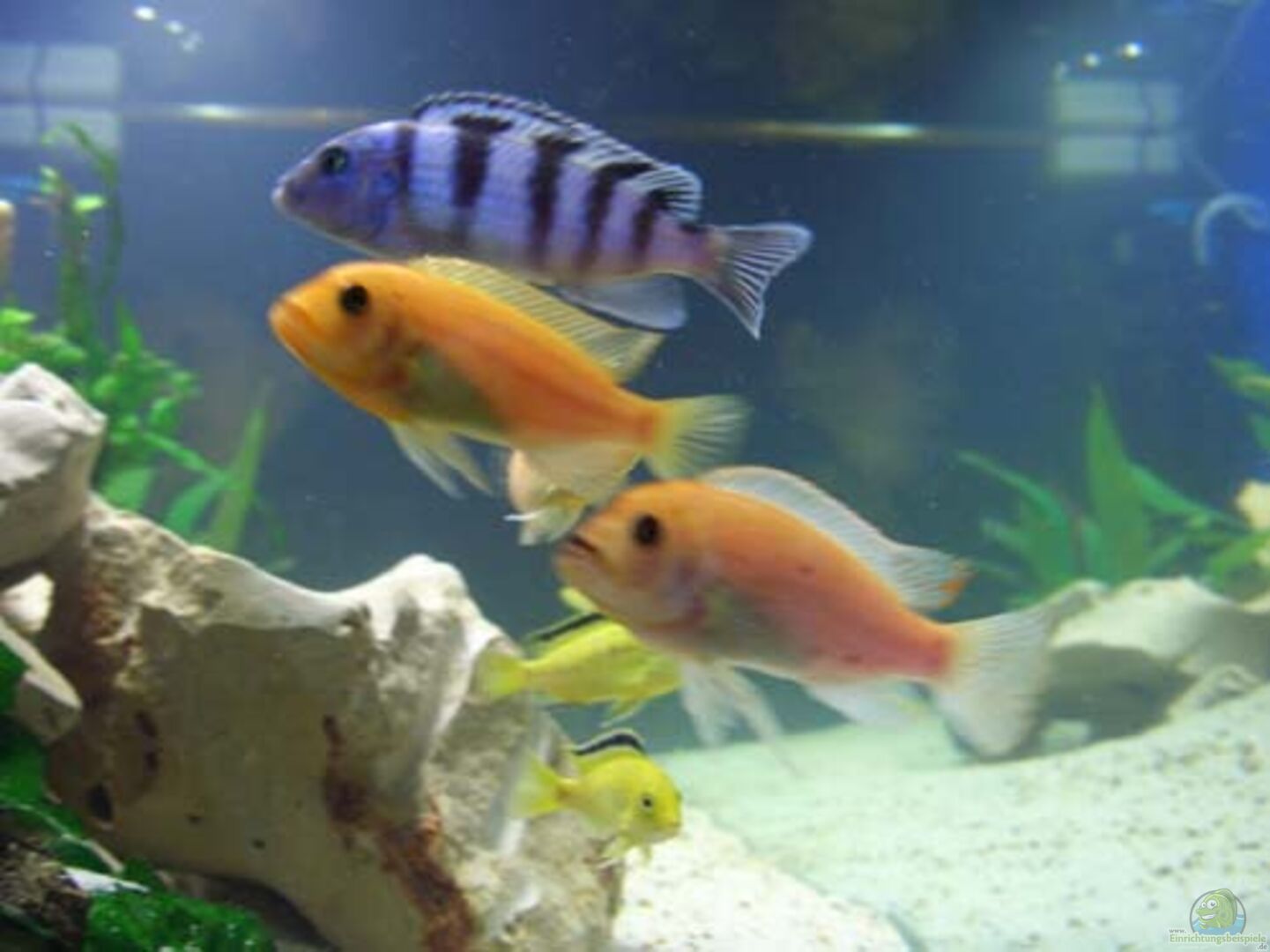 2/3 Pseudotropheus demasoni 2/3Pseudotropheus estherae-red-red 2/4 Labidochromis-yellow (plus momentan ca 30 Jungtieren) 3 Synodontis-multipunktatus