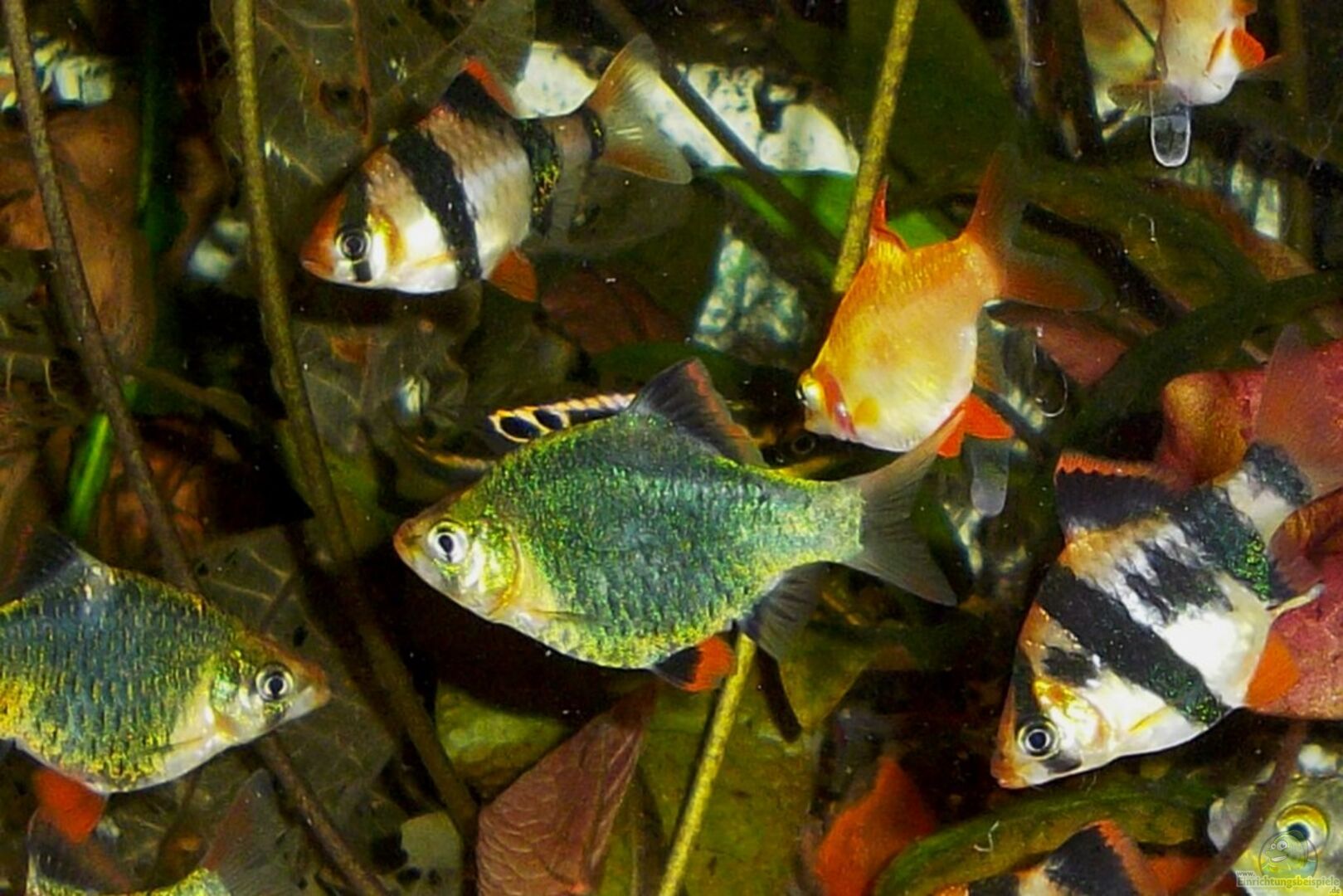 30 Bornebarben ind 4 Farbschlägen (Sumatra, Moos, Platin, Albino) 7 Siamesiche Rüsselbarben 6 Prachtschmerlen, kommen später in ein grö??eres Becken 6 übriggebliebene Mollies, werden auch bald auswandern 2 Purpurprachtbuntbarsche 2 Antennenwelse 3 LDA67 5 Pandapanzerwelse