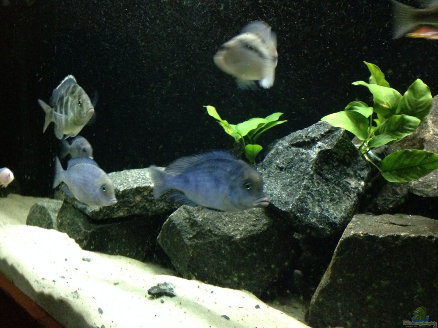 1/2 Dimidiochromis strigatus 1/2 Aristochromis christyi 5 synodontis multipunctatus 1/2 nimbochromis venustus 2 nimbochromis livingstonii 1 sciaenochromis fryeri -ahli Snow white 2/3 Cyrtocara moorii Bei manchen kann ich leider noch nicht das Geschlecht erkennen.